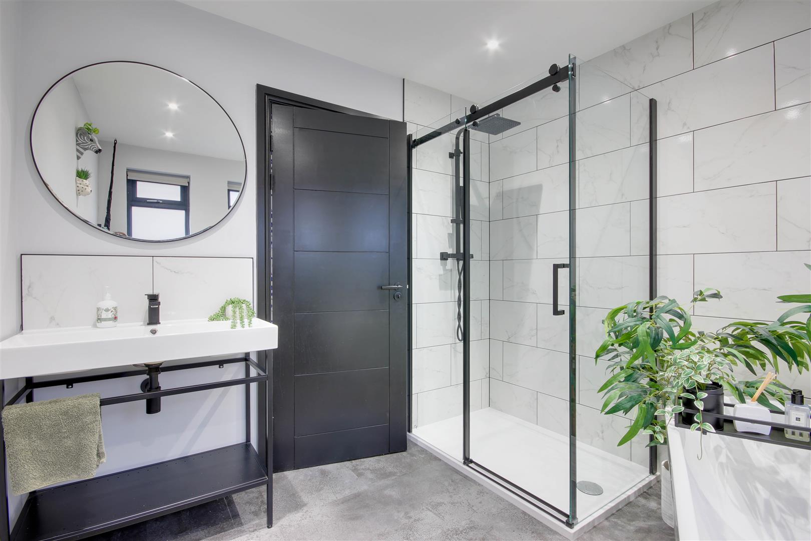 En-Suite Shower Room - With suite comprising a shower enclosure, wash hand basin and low flush W.C. Heated towel rail.