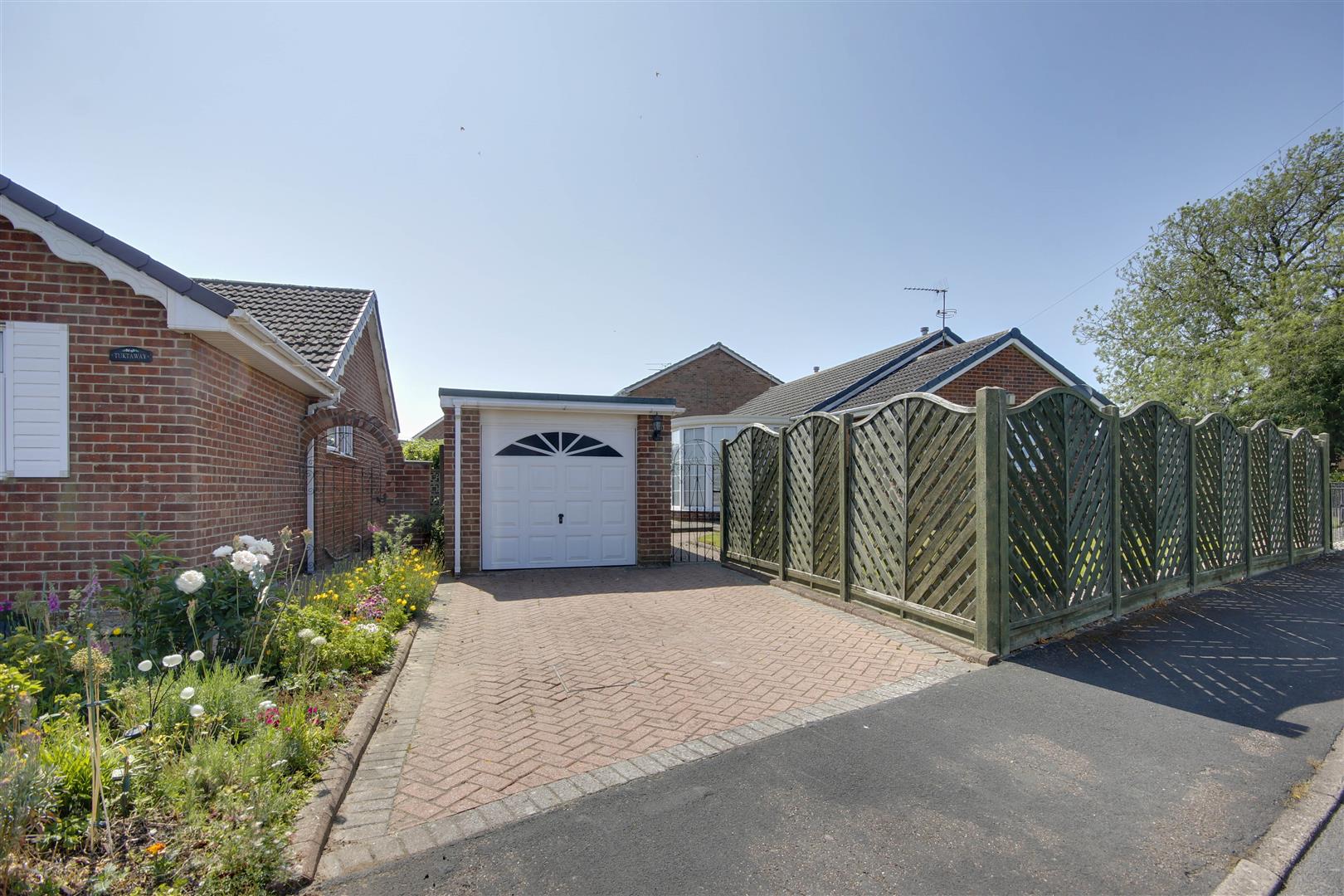 Commanding an attractive corner plot, this home is currently configured for a luxury two-bedroom lifestyle-featuring a principal bedroom with a walk-through dressing room-but provides the easy option to restore the original three-bedroom layout. The well-proportioned accommodation includes a bright, dual-aspect living room with a rear conservatory, a separate dining/sitting room, a fitted kitchen, and a shower room. Essentials include gas-fired warm air central heating and uPVC double glazing. Outside, the property benefits from an impressive, fenced frontage with lawns to the front and side, and a low-maintenance, south-facing rear garden. A block-set driveway and garage complete this desirable home.