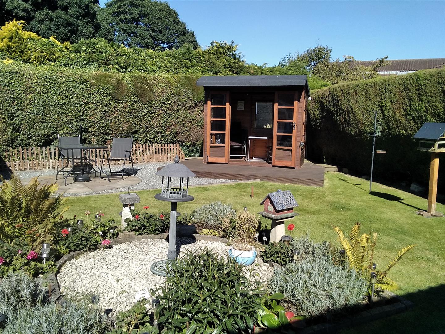 The property stands in a good sized plot with an extensive driveway extending to the front and side and leading onwards to the large detached, single garage with power and light supply and a remote controlled up and over entry door. The lovely rear garden is mainly lawned with patio area, garden shed and summerhouse.