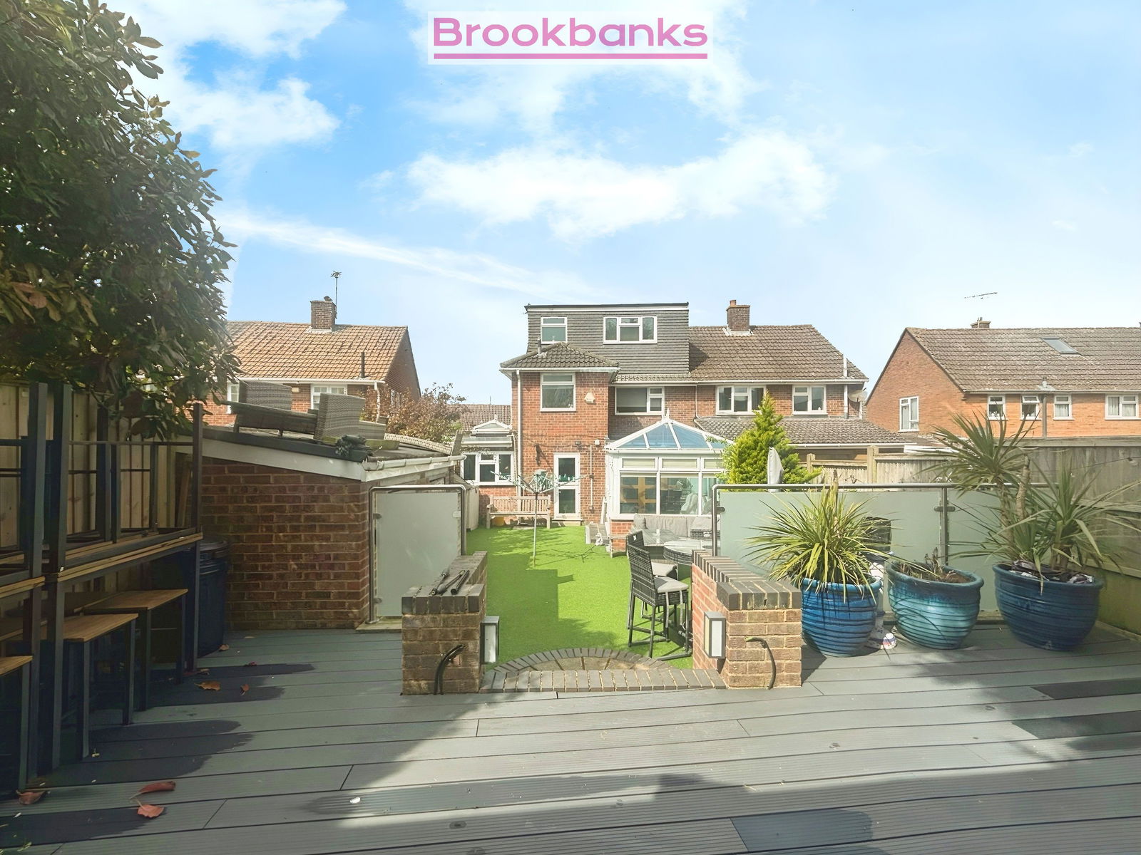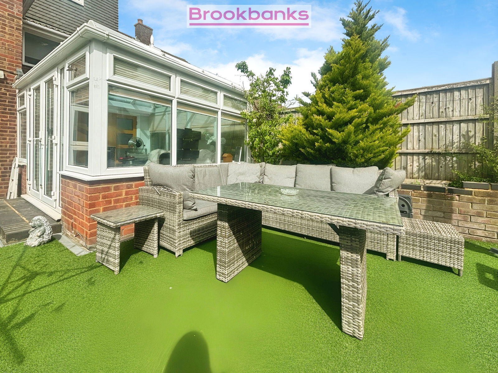 - Low-maintenance rear garden with artificial turf