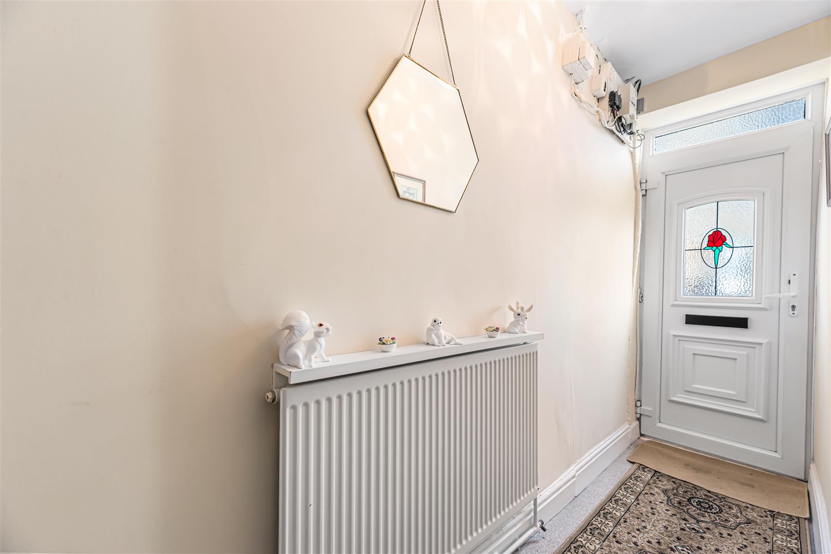 Hallway - 2.99 x 0.83 (9'9" x 2'8") - Entrance hallway with pvcu front door, radiator and fitted carpet.