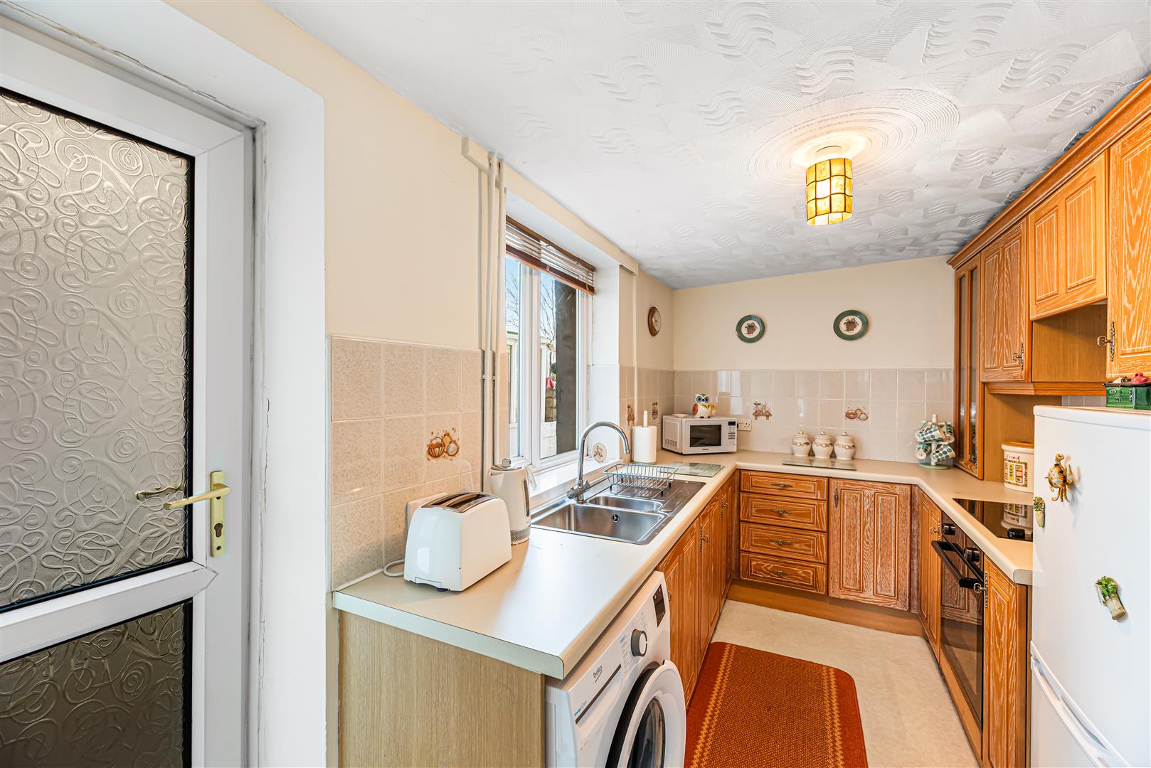 Kitchen - 3.82 x 2.12 (12'6" x 6'11") - Equipped with a range of wall & base units, worktops, stainless steel sink, oven, electric hob & extracor. With space for appliances or a small dining table, pvcu windows & door to the rear garden.