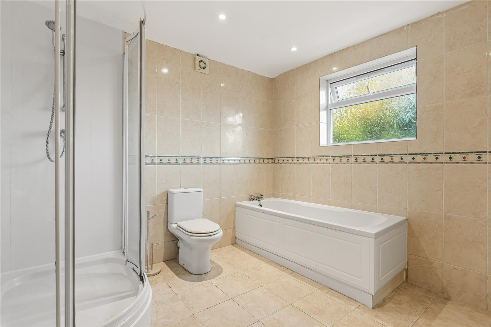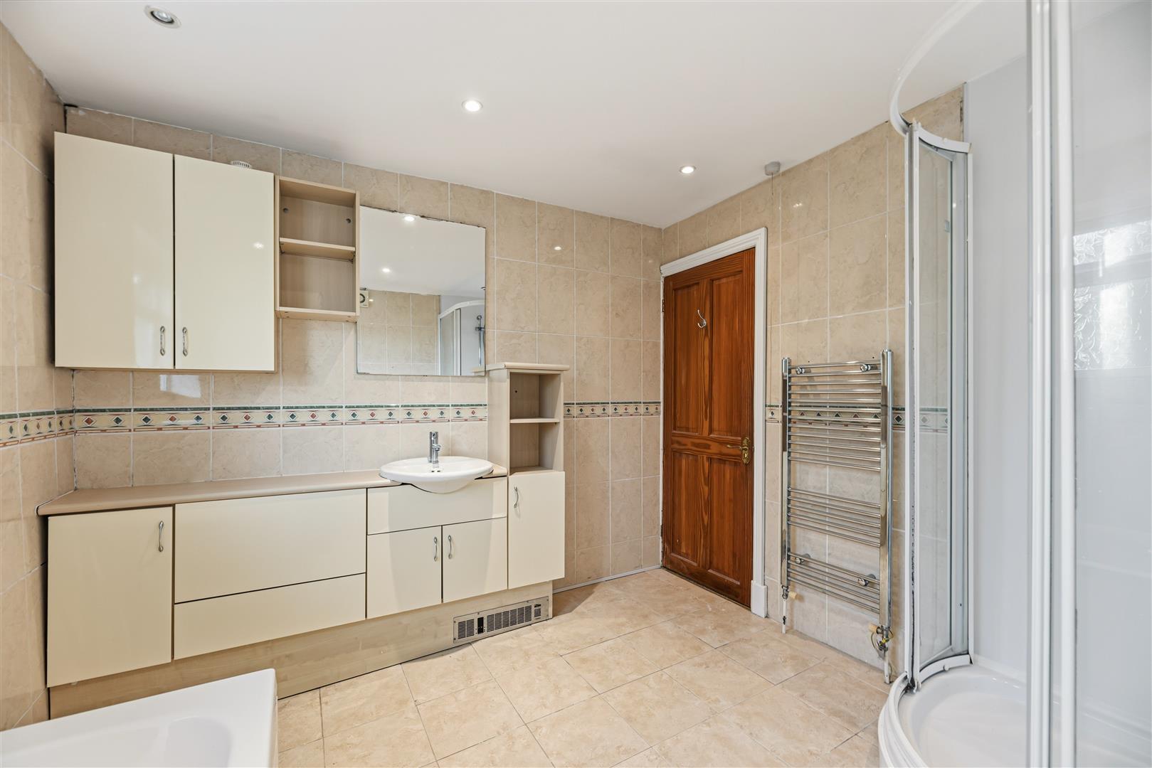 Bathroom - 2.88 x 2.84 (9'5" x 9'3") - Expansive family bathroom fitted with a range of storage units, sink, corner shower and bath.