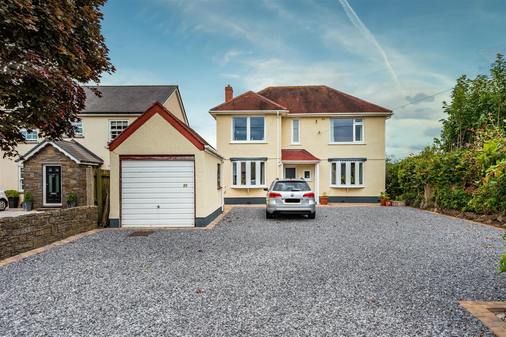 - Front driveway & detached garage