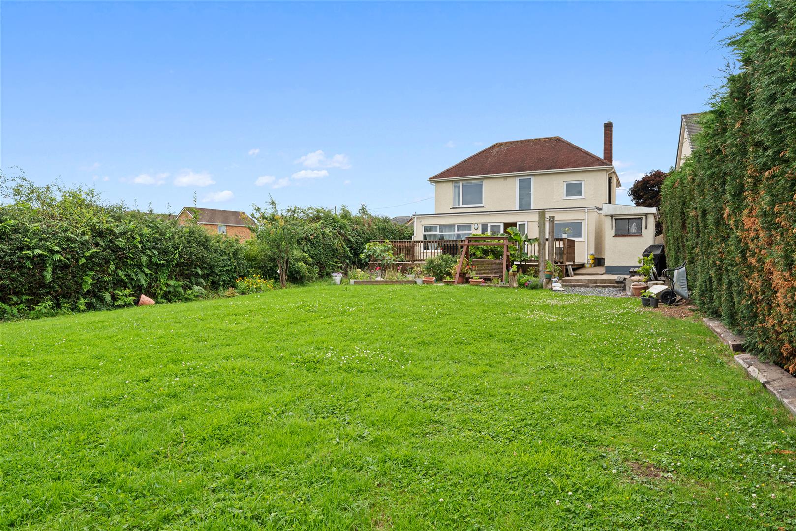- Large rear garden with deck and lawn