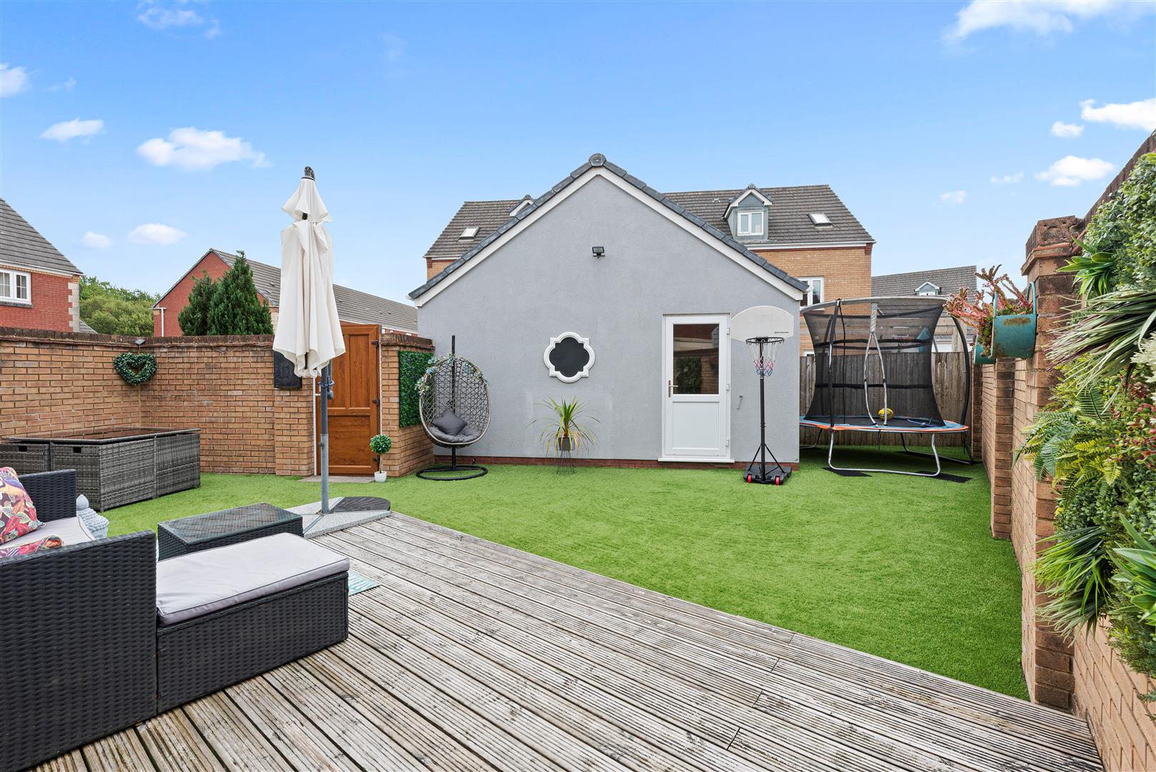 External And Location - The south facing garden, accessed via the conservatory, is a fantastic outdoor space designed with both relaxation and practicality in mind. A decked patio area provides the perfect spot for alfresco dining or summer entertaining, while the low-maintenance artificial lawn offers a safe and tidy play area for children & pets. There's direct access to the converted garage, currently used as a home office/gym, making it easy to squeeze in a workout or focus on work while staying connected to home life. A rear gate leads to the driveway, adding convenience to this versatile and family-friendly space.