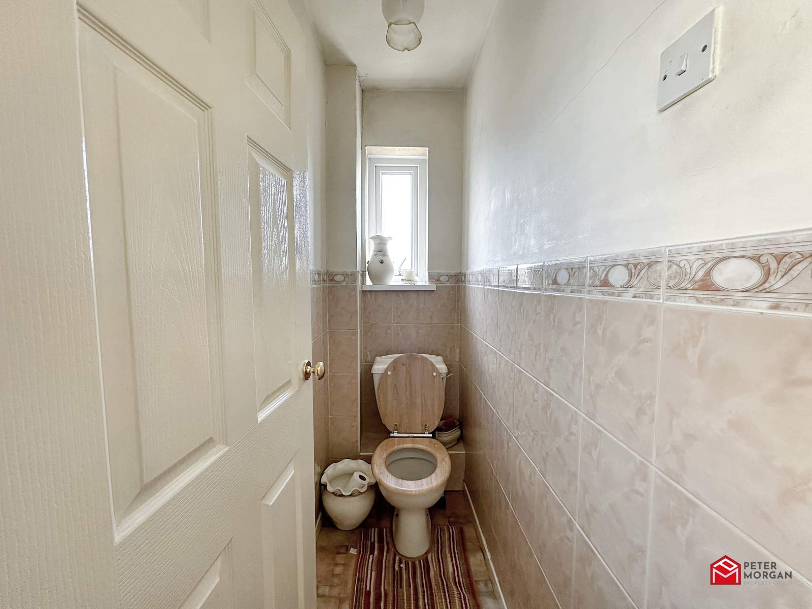 Low level WC, uPVC Frosted double glazed window to rear aspect. part tiled walls and tile-effect vinyl flooring.