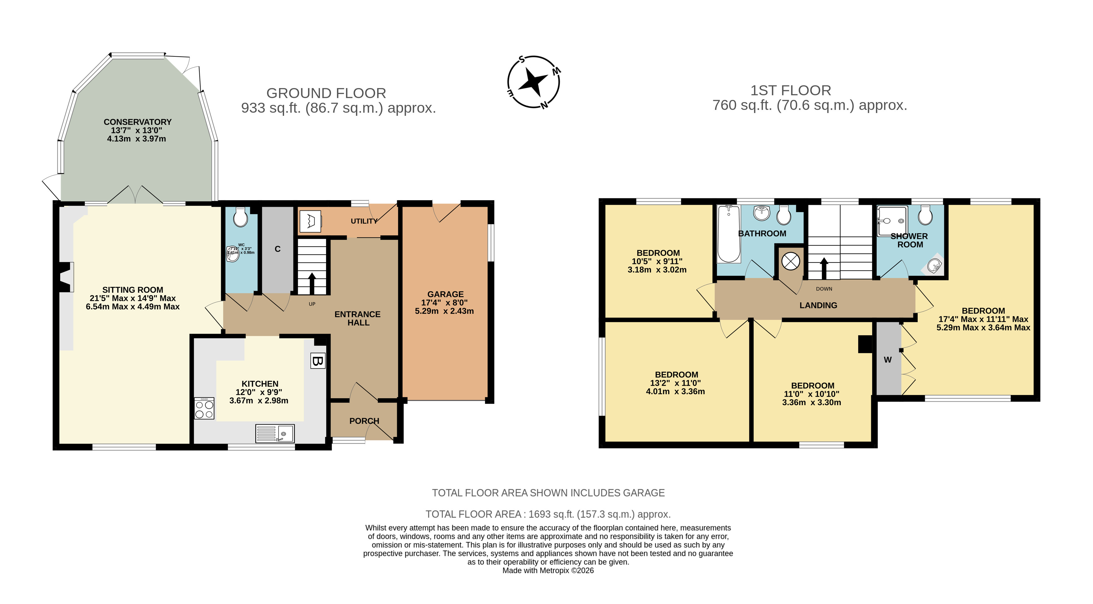 Upstairs, the home continues to impress with four well-proportioned double bedrooms, all of which benefit from space for freestanding or fitted wardrobes. A family bathroom and a separate shower room complete the internal accommodation.
