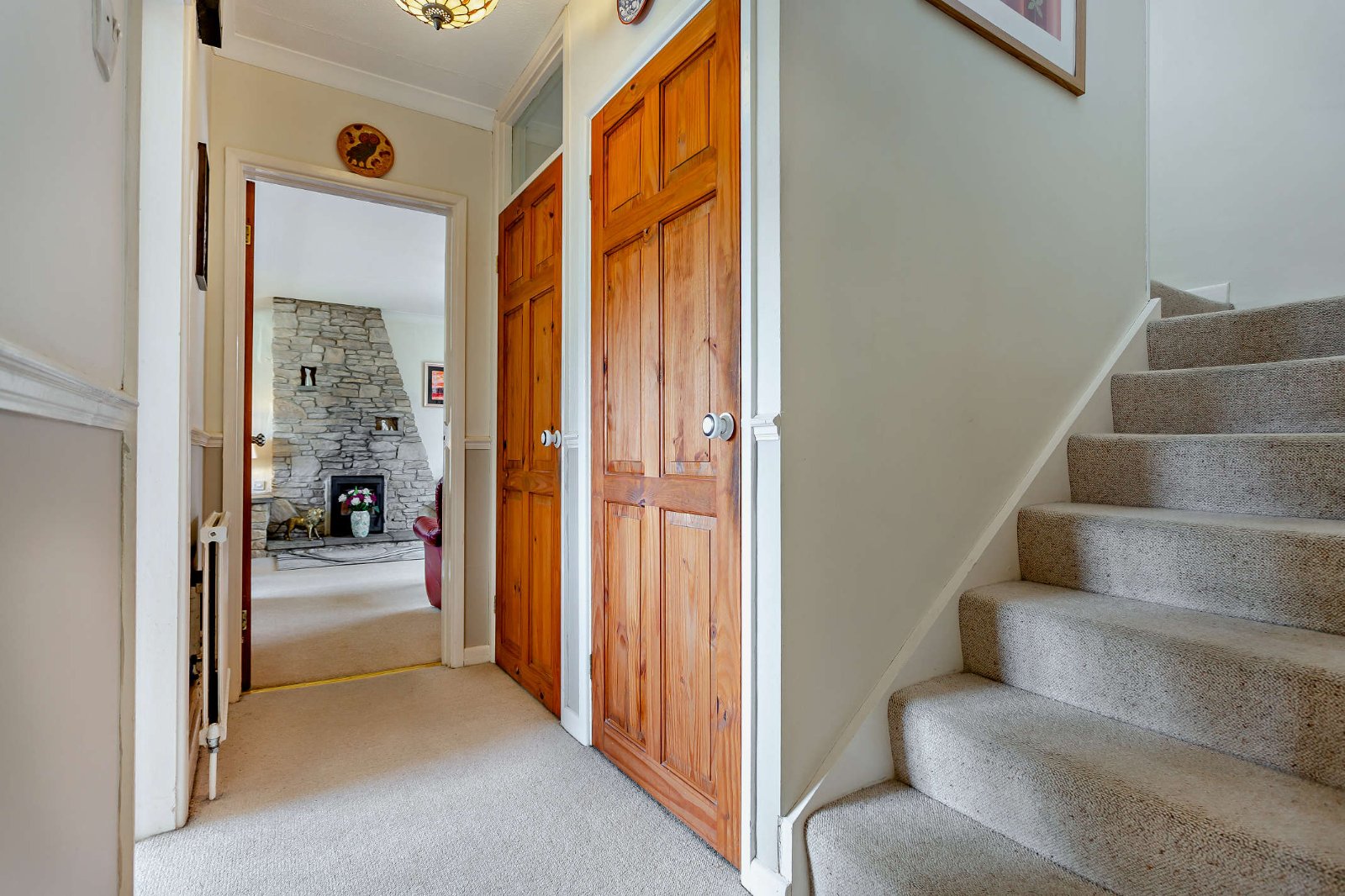 Off the hallway, there is a cloakroom, a large understairs storage cupboard, and a useful rear lobby/utility area with a secondary access door to the garden.