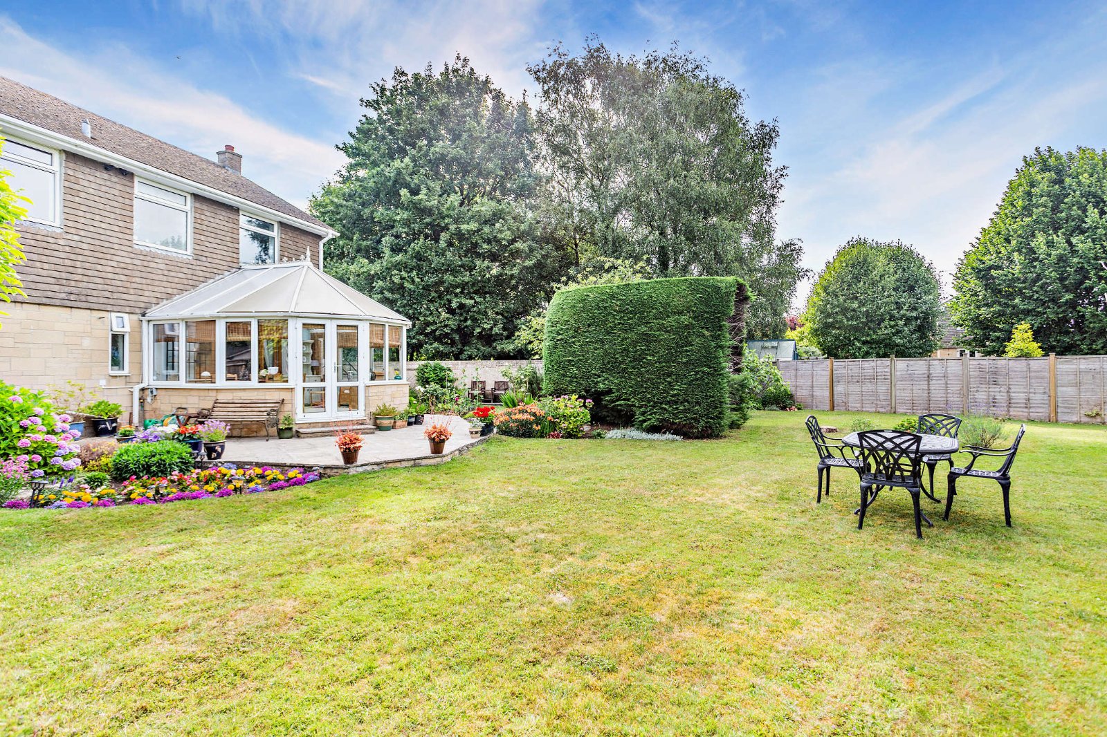 Tucked away in a peaceful and established corner of Ashton Keynes, this well-loved home enjoys a particularly generous and mature plot. The double width shared drive leads to private parking and a single garage, the driveway with the house set back behind a lawned front garden filled with established planting that gives a welcoming first impression.