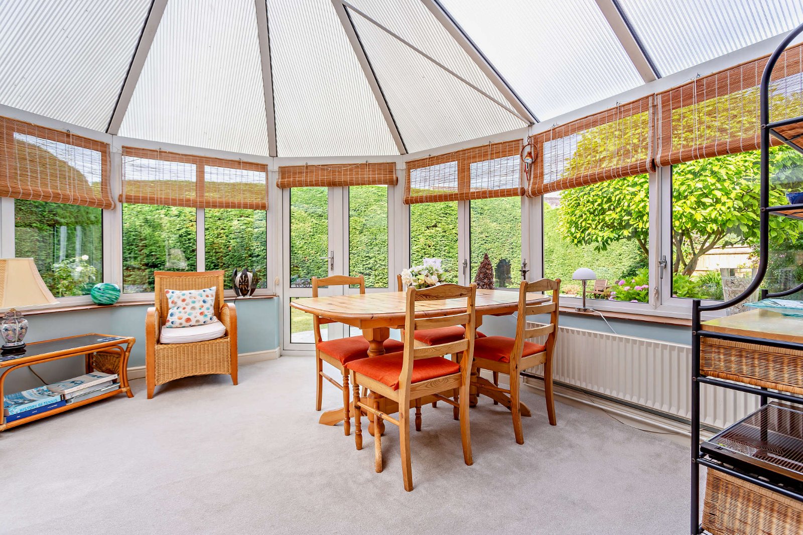 Double doors open into the conservatory, which enjoys views over and access to the beautiful rear garden — a tranquil space ideal for year-round enjoyment.