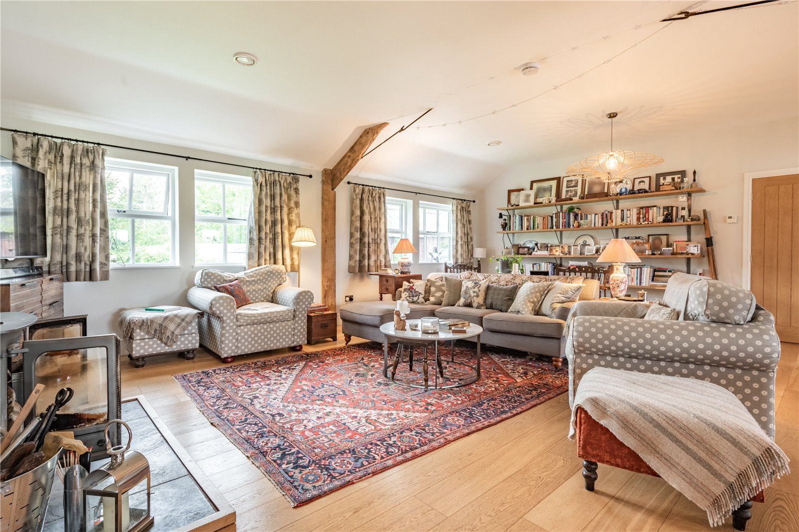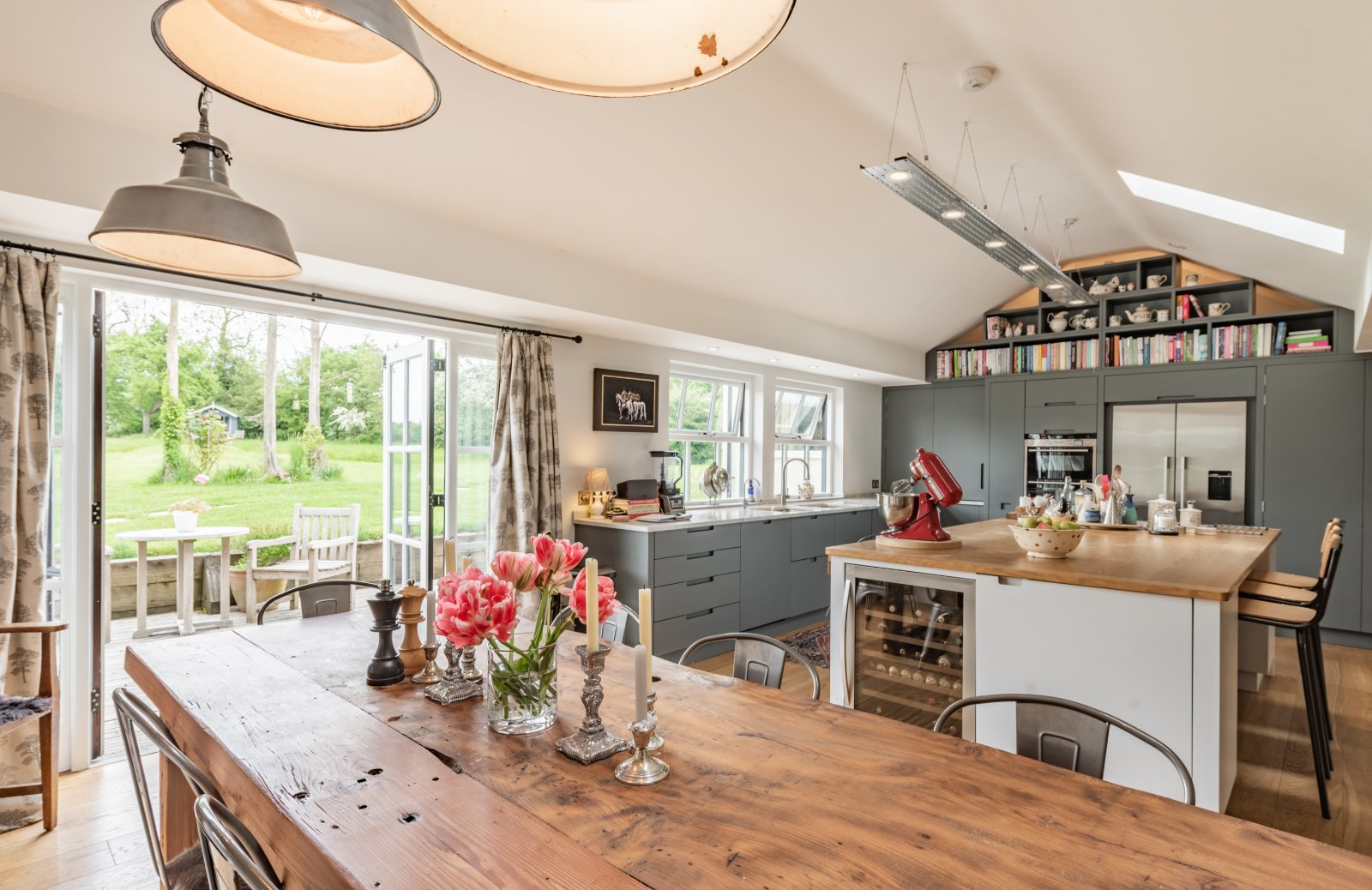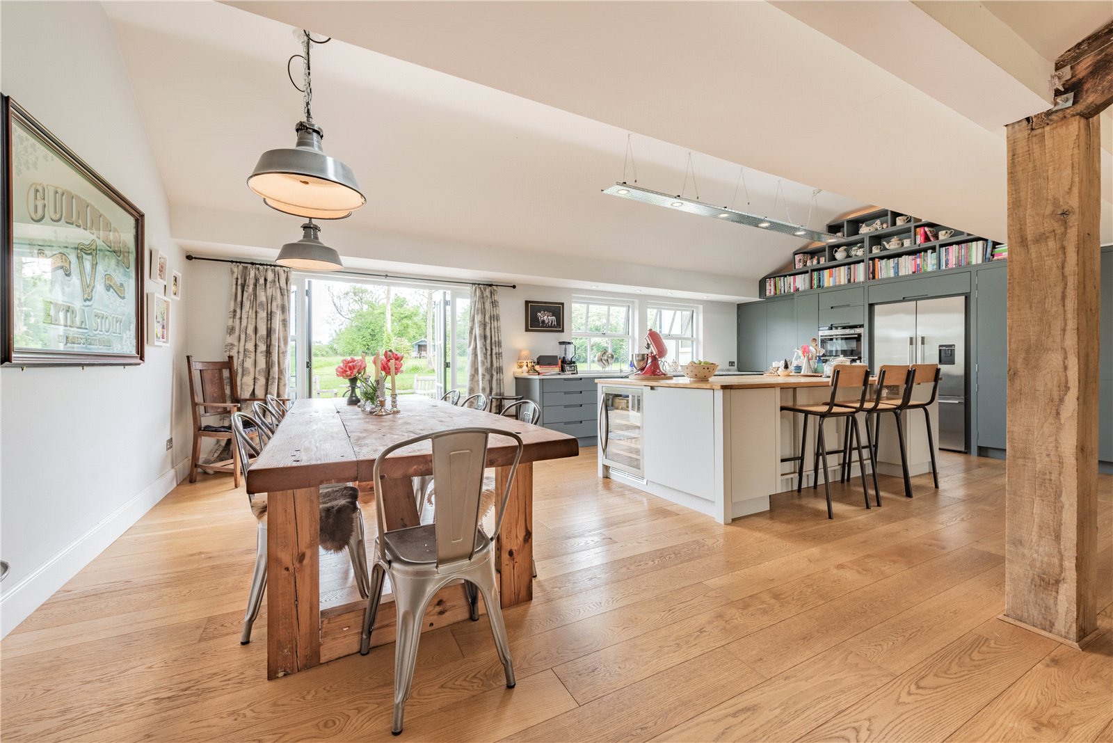 This represents a unique opportunity to acquire a superb individual home that benefits from considered design, the heart of which is built around a large open plan living environment combining a hand crafted kitchen with integrated appliance package, a dining area with French doors opening out to the patio and a generous sitting room focussed around a contemporary design woodburning stove.