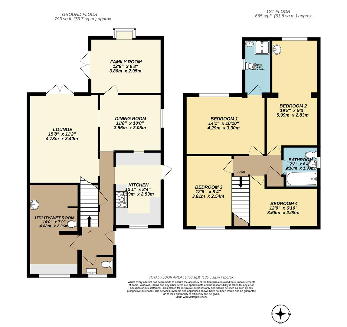 To the first floor are four double bedrooms, with the principal bedroom benefiting from an en-suite shower room. A family bathroom services the remaining three bedrooms.