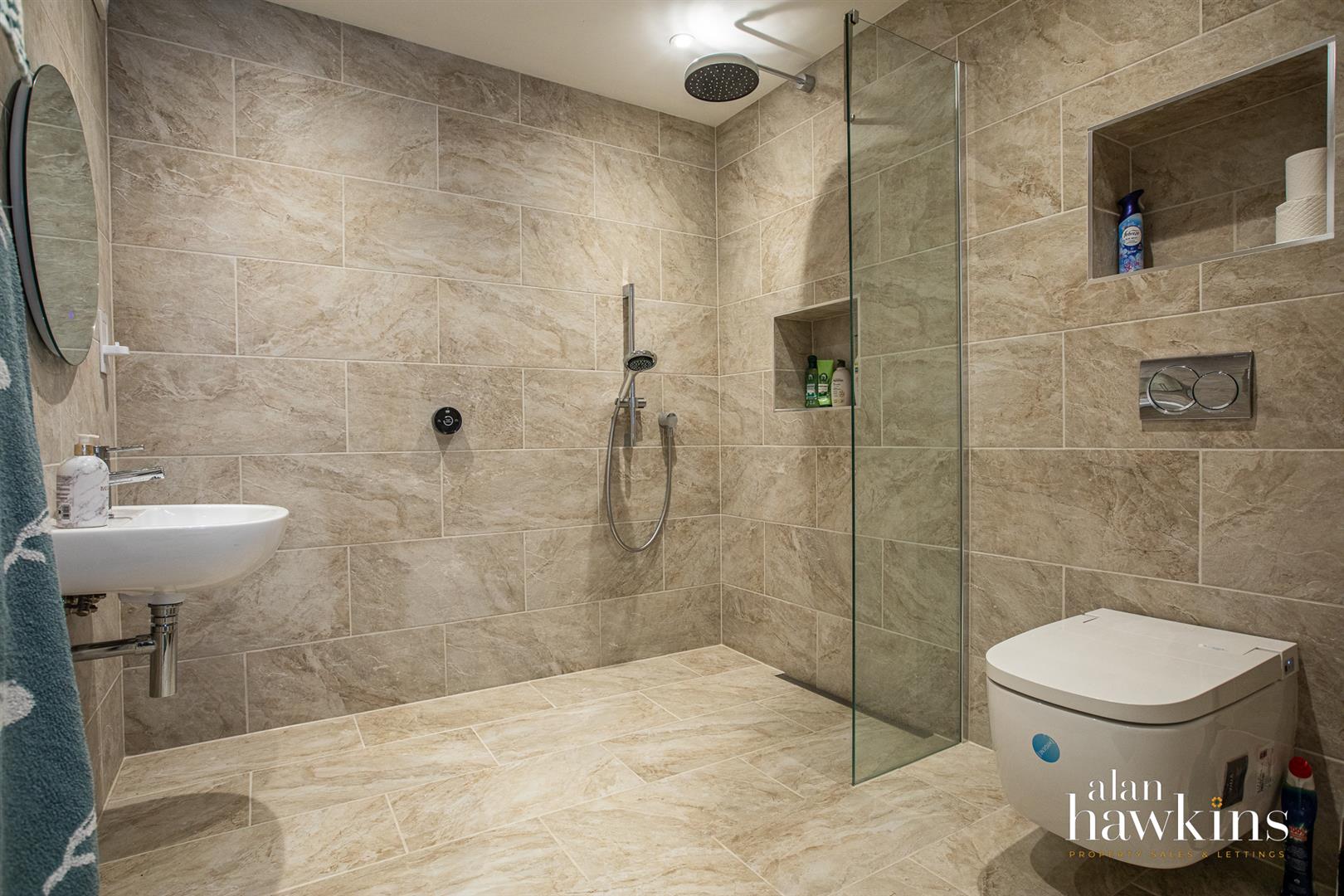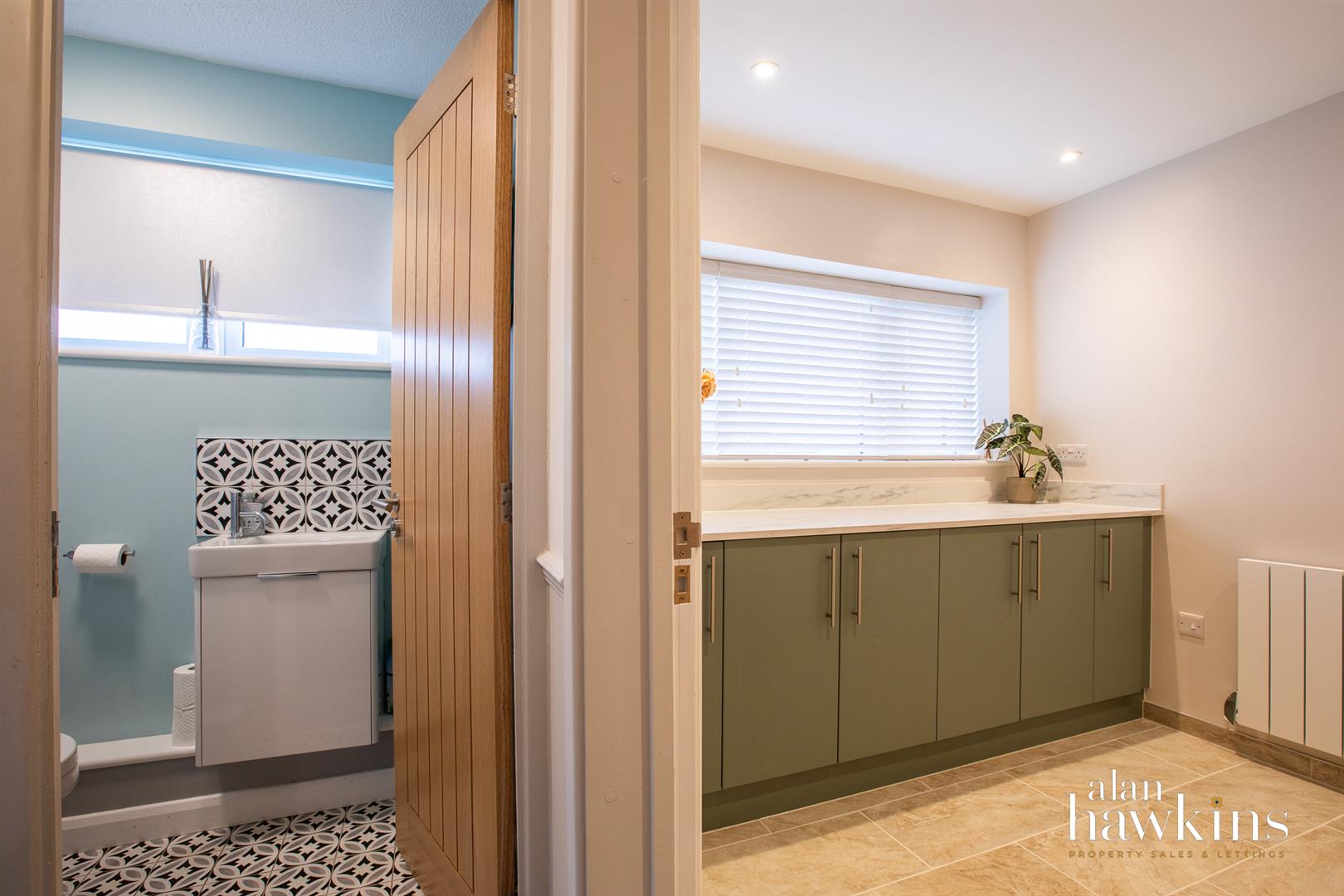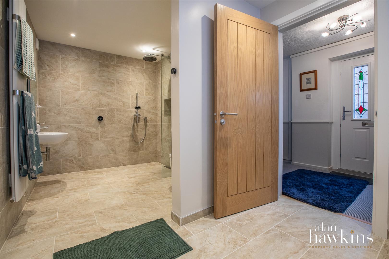 Constructed circa 1983 and later extended around 1990 by the current owner, this impressive home offers exceptionally versatile accommodation. A gently ramped access leads to the front door and into the welcoming hallway, where you will find a tastefully refitted cloakroom to the front and a large, impressive utility/wet room. Designed with wheelchair accessibility in mind, this fully tiled space features a remote-controlled, Japanese-inspired WC and monsoon shower.