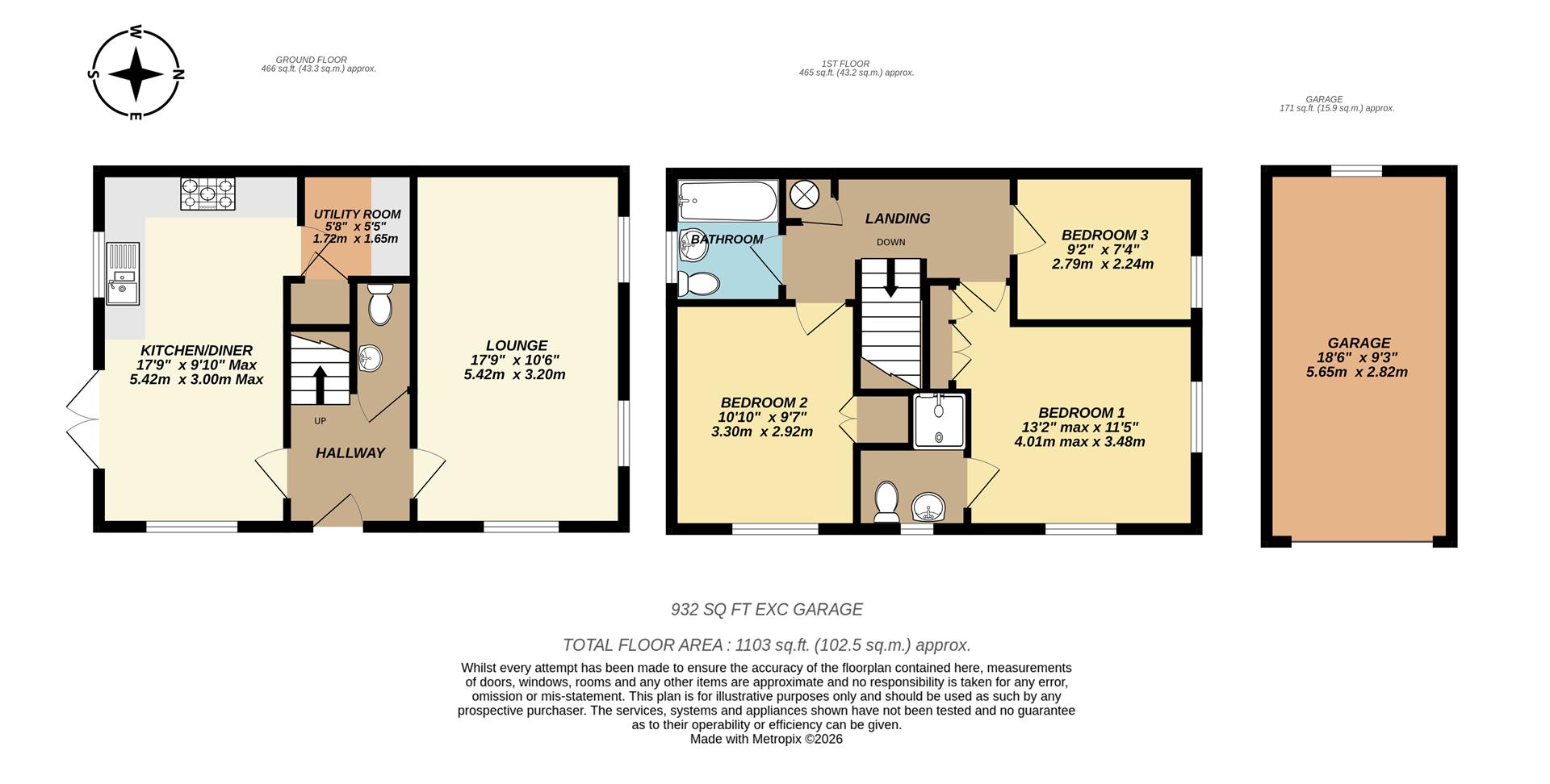 Upstairs, the main bedroom is a comfortable double with built-in wardrobes and a stylish en-suite shower room. The second bedroom is also a double and benefits from built-in wardrobe, while the third is a well-proportioned single, ideal as a nursery, study, or home office. A modern family bathroom serves the remaining bedrooms and includes a bath with shower over.