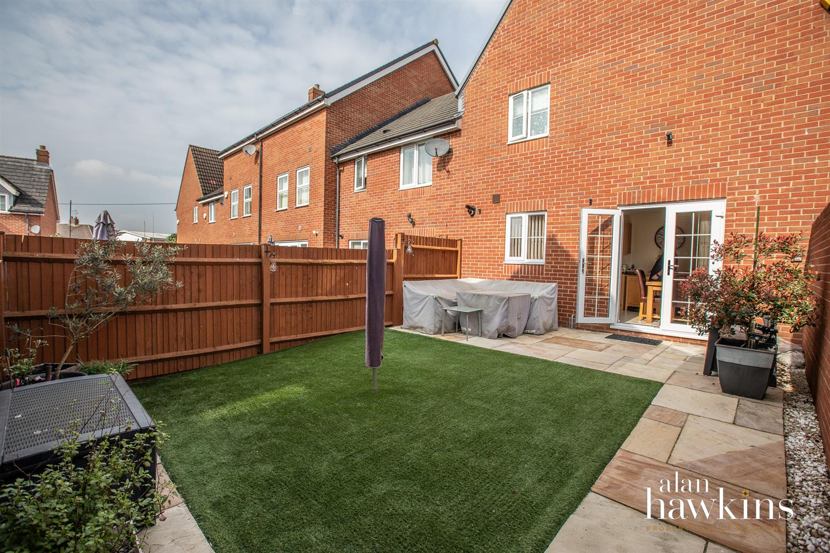 Outside, the south-facing rear garden is designed for ease of maintenance, featuring a sandstone patio and artificial lawn, perfect for enjoying sunny days. There is rear access leading to off-road parking, along with space for several vehicles and a single garage.
