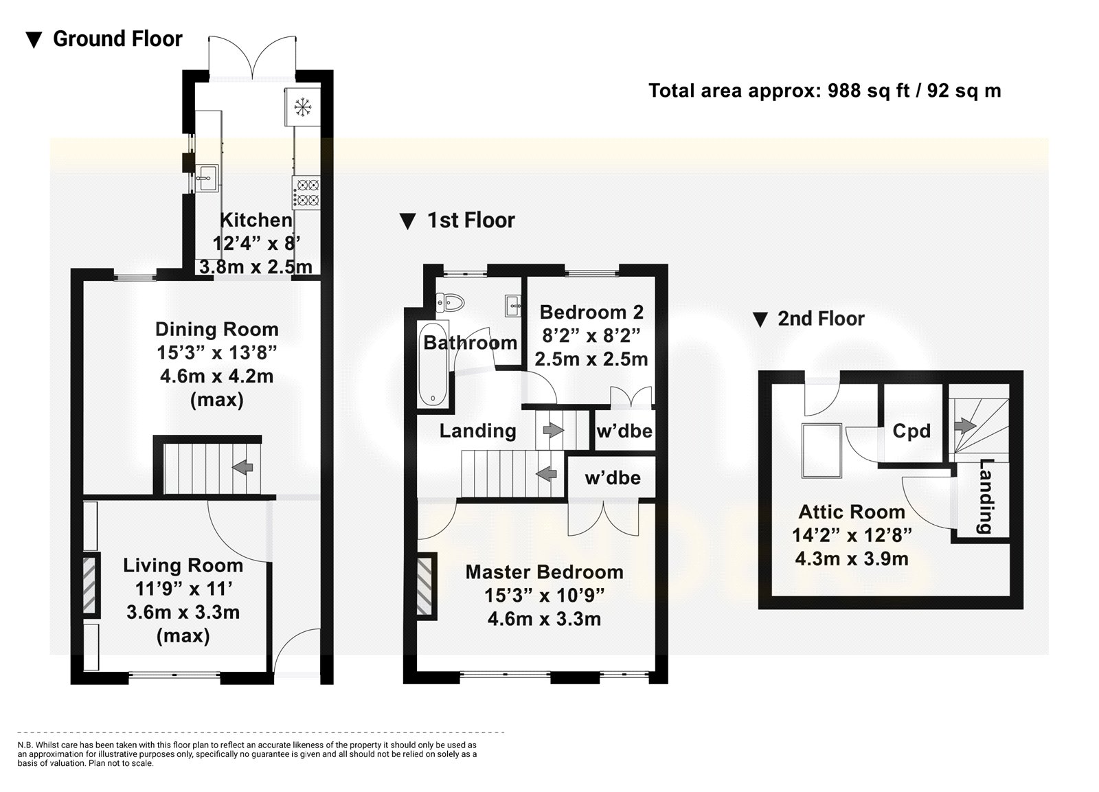 On the first floor, you will find two well-proportioned bedrooms along with a modern family bathroom. The second floor hosts a further generous bedroom, offering a versatile space that could be used as a principal bedroom, guest room, or home office.