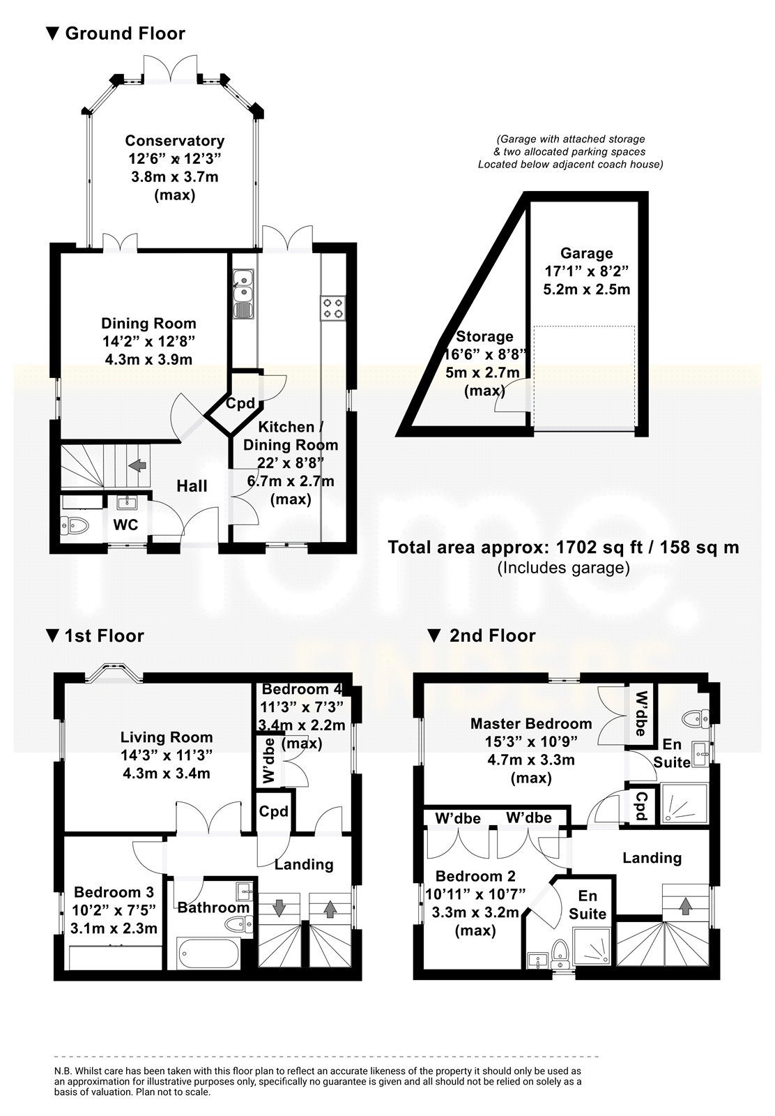 Upstairs, four generous bedrooms are complemented by built-in wardrobes and two en-suite bathrooms, along with a modern family bathroom. Additional benefits include a garage and off-street parking.