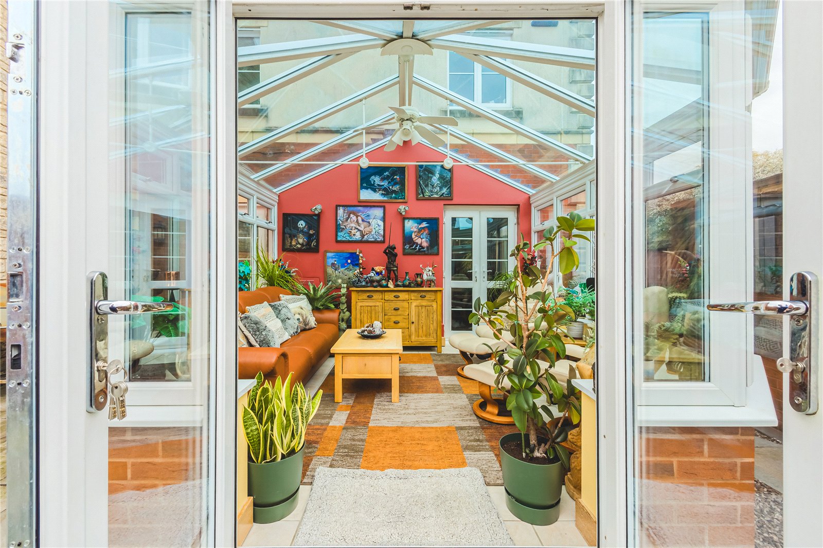 The home provides more living space than typical for the area, featuring a modern kitchen with built-in appliances, a bright living area, and a conservatory that adds extra light and usable space.