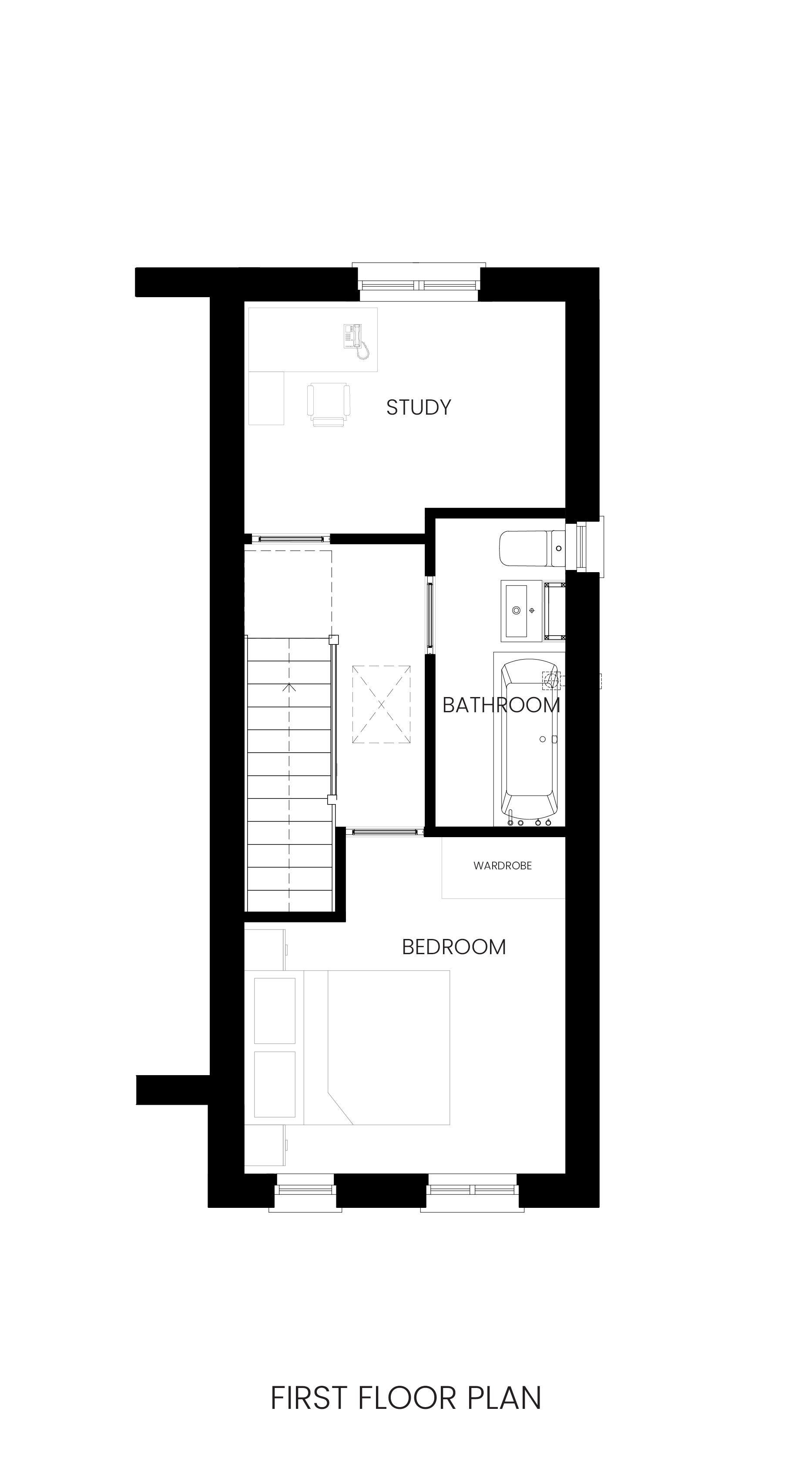 Please note: the photograph shown is computer generated. The new build is located on the right-hand side of the terrace, with the middle and left properties being pre-existing homes.