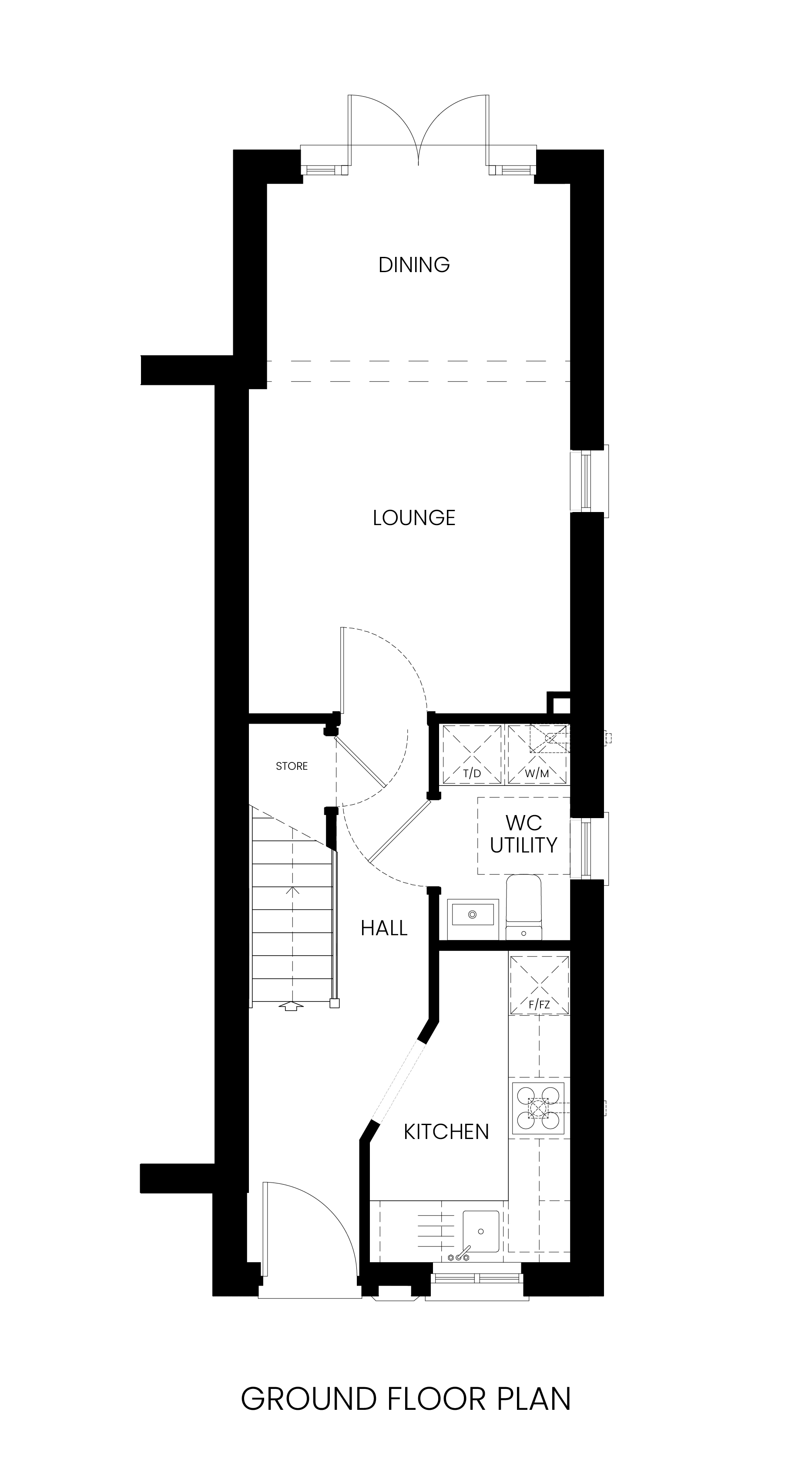 The property is thoughtfully designed and arranged over two floors. To the ground floor, the home features a kitchen positioned at the front, with a spacious open-plan living and dining area to the rear, creating an ideal space for modern living. A ground floor WC/utility adds further practicality.