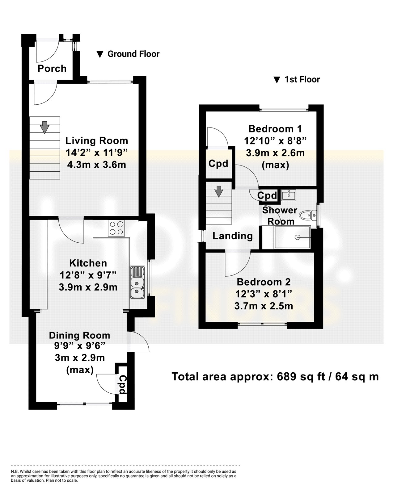 Upstairs, there are two well-proportioned double bedrooms and a modern shower room.
