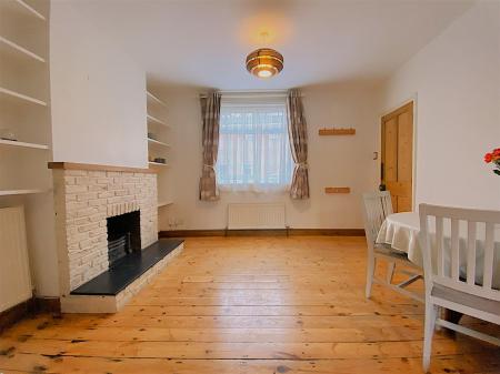 Lounge - 3.76m x 3.02m (12'04 x 9'11) - With upvc double glazed window to the front, open fireplace with brick surround, exposed floor boards and step leading into.