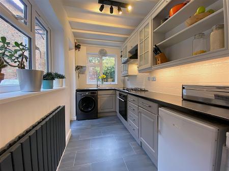 Kitchen - 3.94m x 1.78m (12'11 x 5'10 ) - Fitted with a range of floor and wall mounted units with roll top work surfaces and tiled splashback. The kitchen also benefits from a fitted oven, hob and extractor, sink and drainer unit and plumbing for a washing machine.