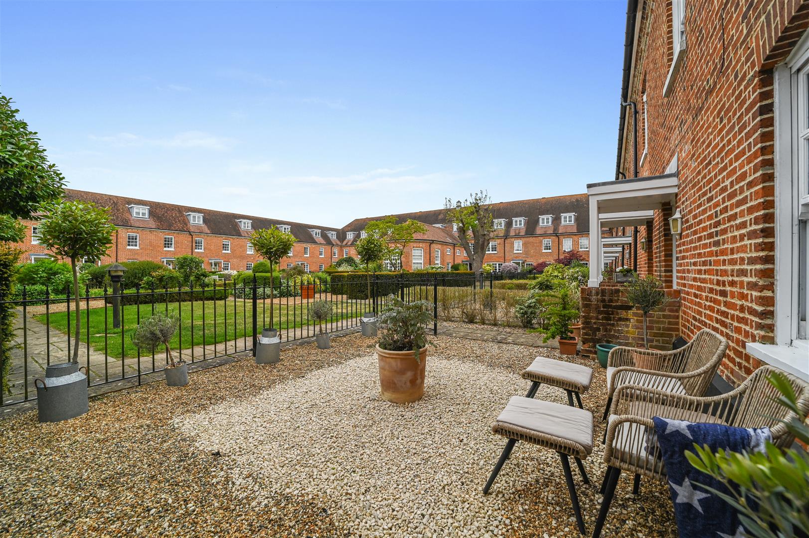 Arranged over three floors, the accommodation is spacious and thoughtfully designed. The ground floor features a recently fitted open-plan kitchen and a bright, welcoming sitting/dining area with access to the courtyard garden. The front aspect enjoys lovely views over the immaculately maintained central courtyard.