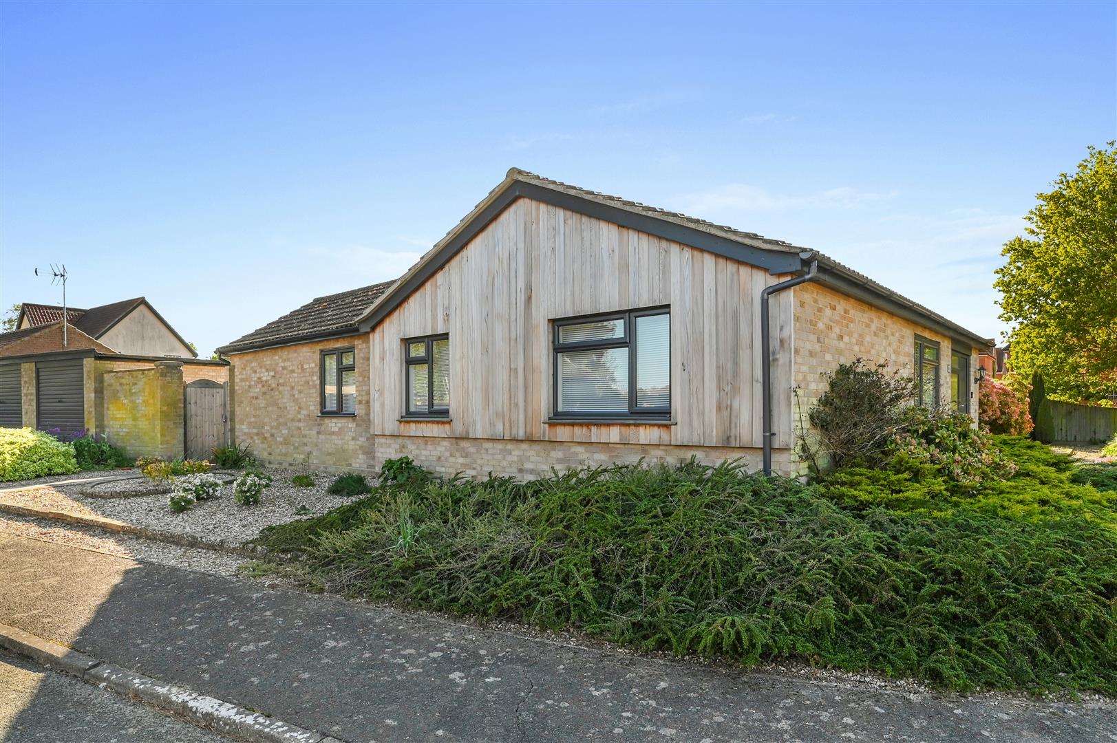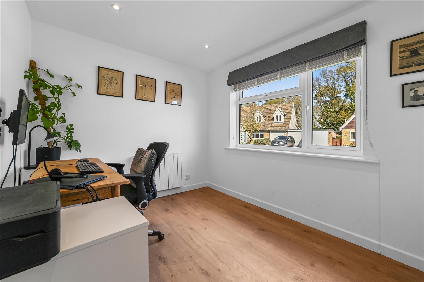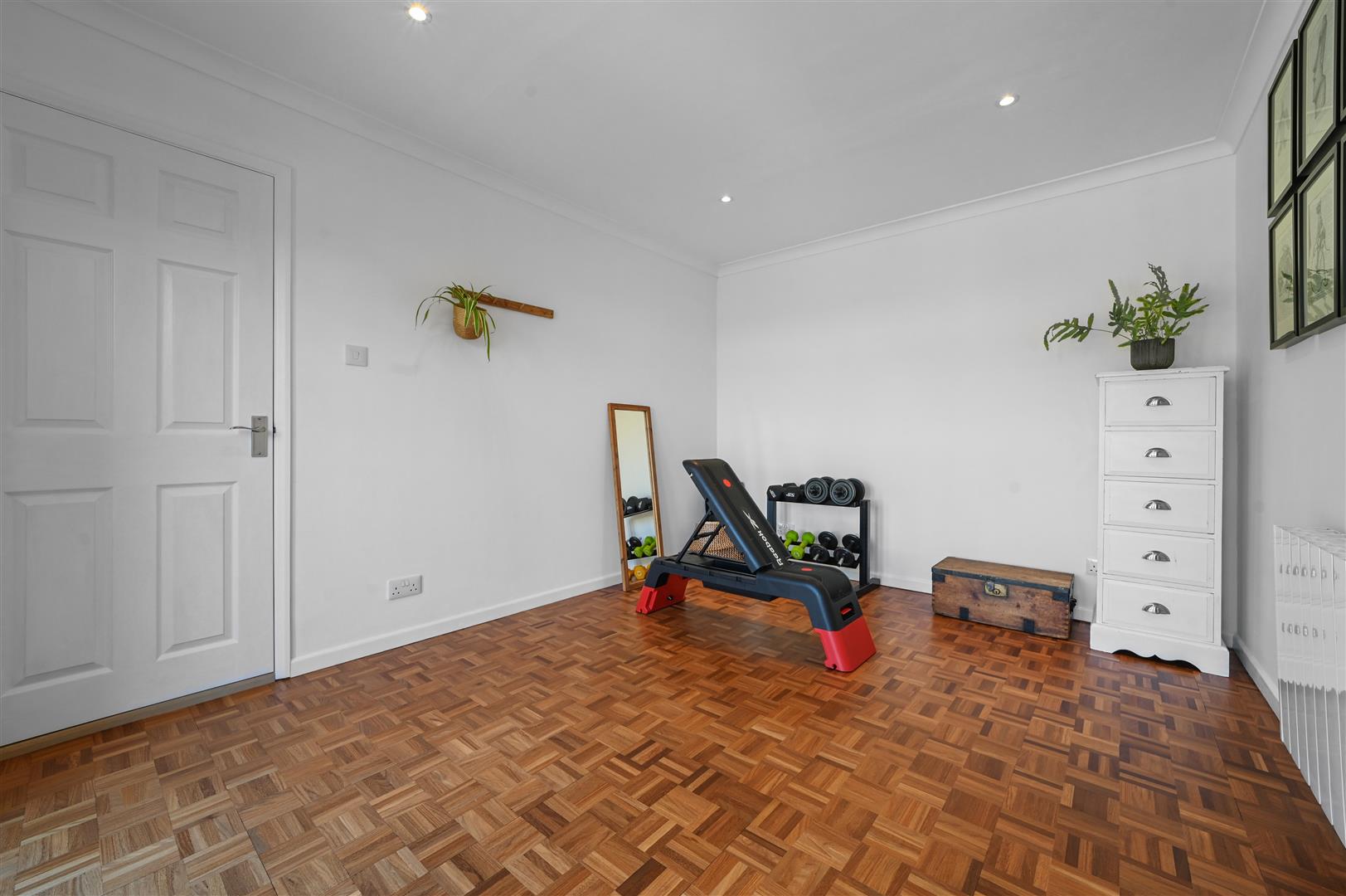 The bungalow offers a highly versatile layout, comprising four generously proportioned bedrooms, with flexibility to create additional reception space if desired. The principal bedroom benefits from built-in wardrobes and a dedicated dressing area, while two further bedrooms also feature integrated storage. The fourth bedroom is currently arranged as a home office, with the third utilised as a gym, demonstrating the home's adaptability. A beautifully appointed family bathroom completes the accommodation, featuring both a separate bath and shower to suit all preferences.