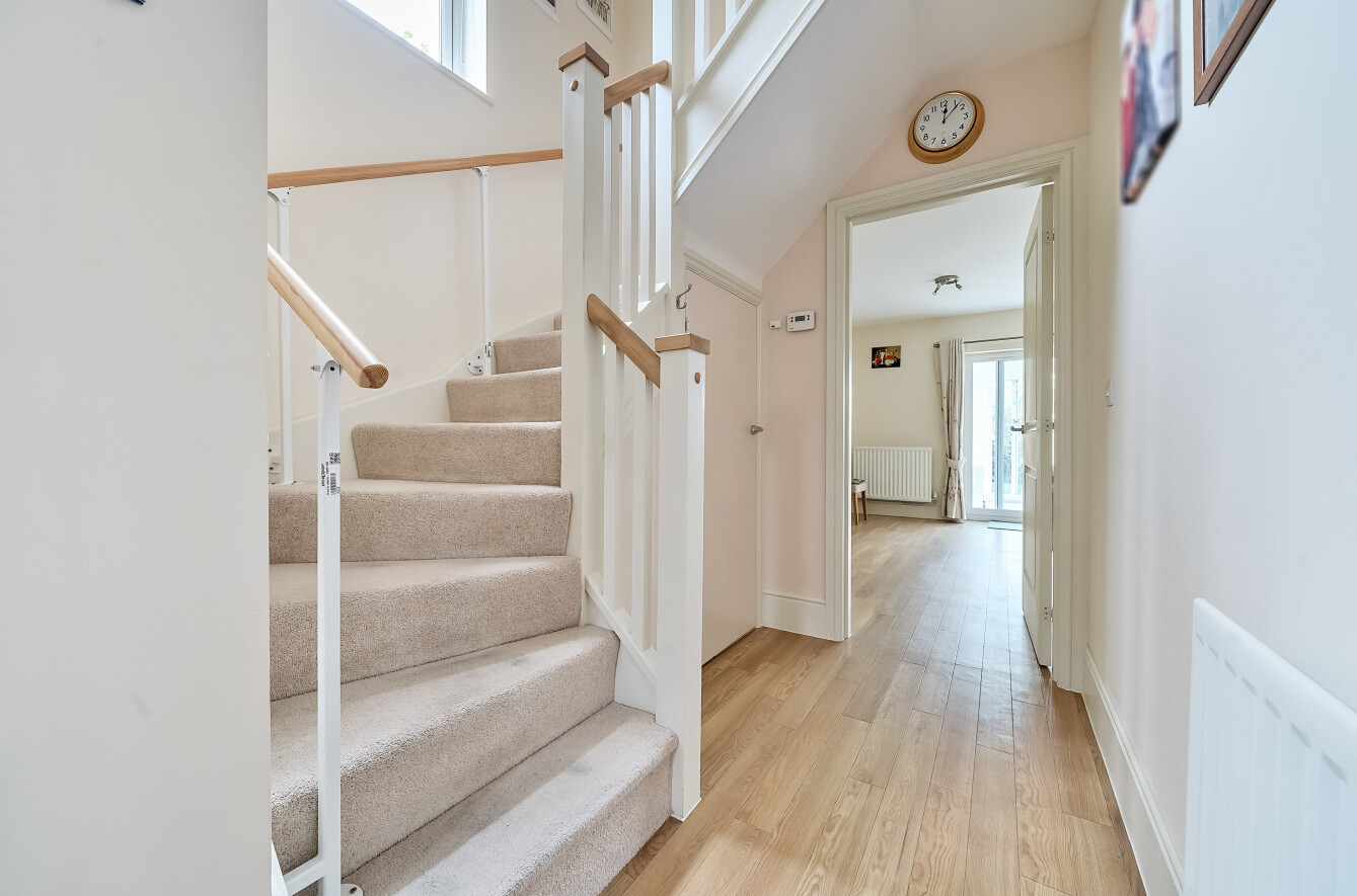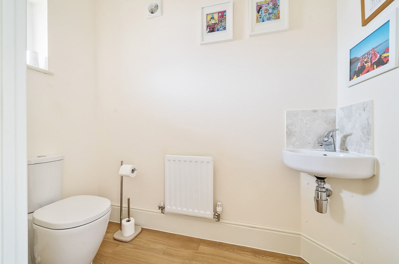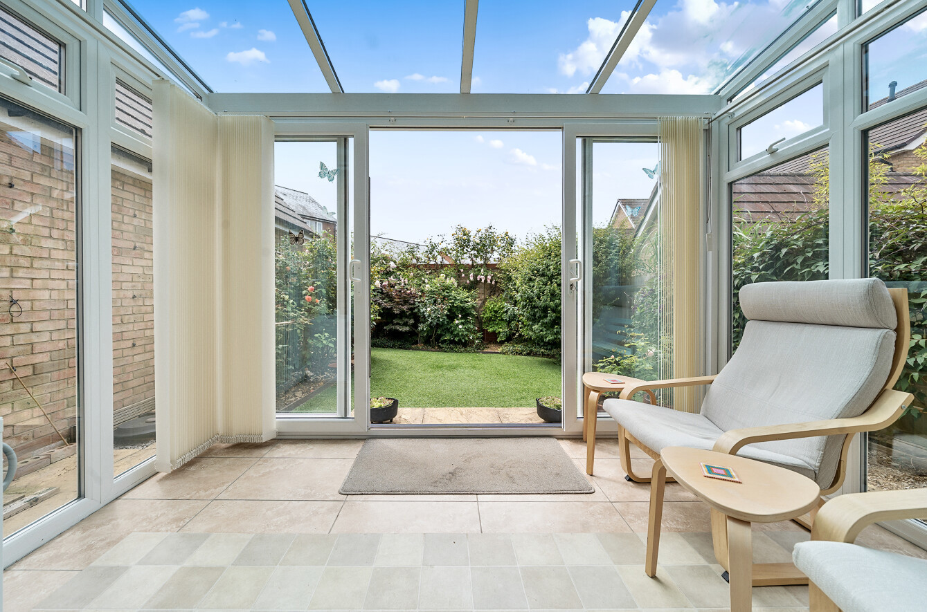 Step into a spacious hallway with a turning staircase and a useful understair cupboard. The light and airy, generous sized lounge is the perfect space to relax, while the heart of this beautiful home is the open-plan kitchen/dining roomideal for family living. The stylish modern kitchen comprises a range of wall and base units with complementary work surfaces, an inset one-and-a-half bowl stainless steel sink, and splashback tiling. Integrated appliances include a gas hob with cooker hood, electric oven, microwave, dishwasher, and fridge/freezer. A separate cupboard houses plumbing for a washing machine and space for a tumble dryer above. French doors open to a bright, double-glazed conservatory with access to the delightful rear garden. A ground floor cloakroom includes a WC, wash hand basin, splashback tiling, and extractor fan.
