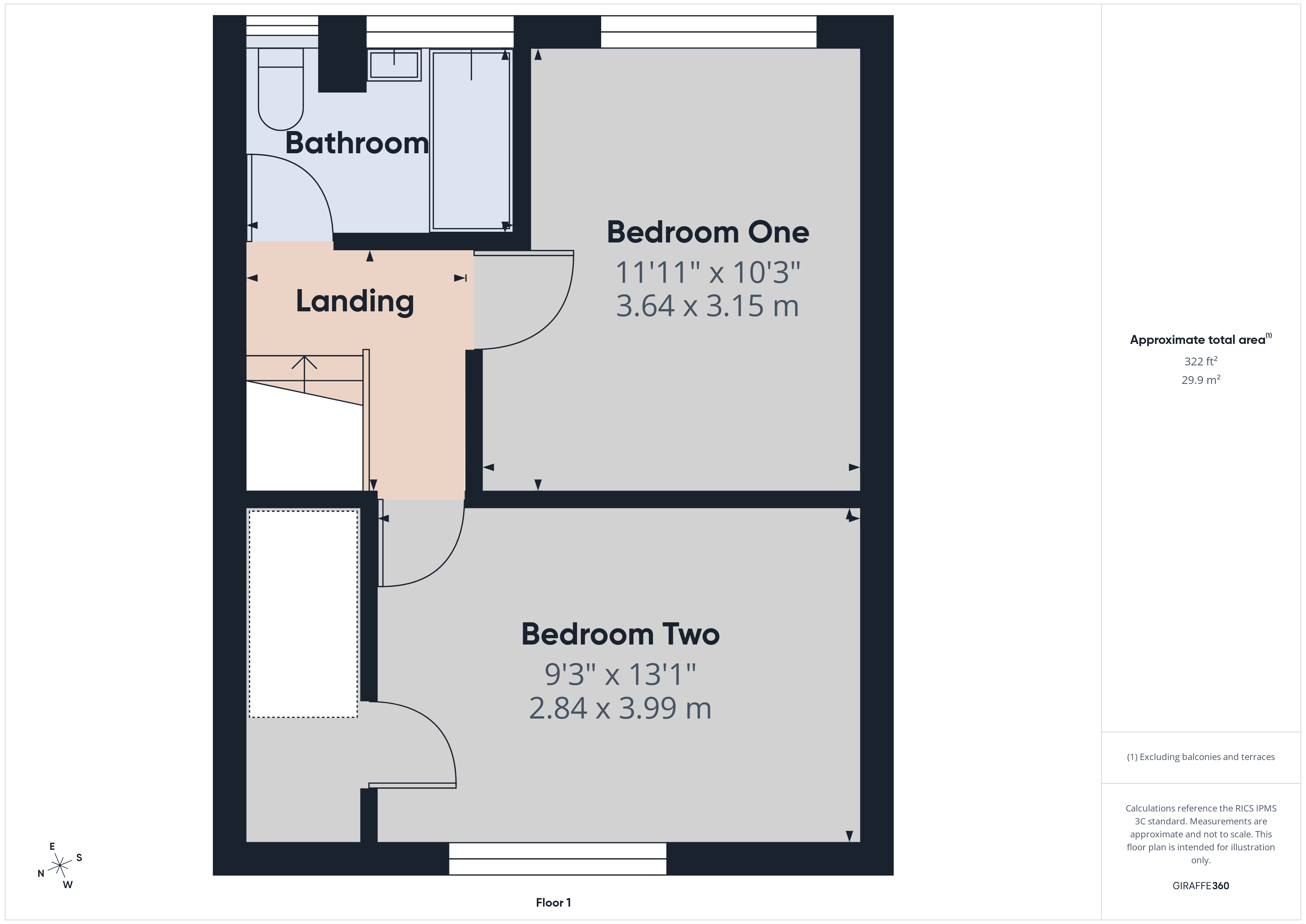 BEDROOM ONE 13’1” x 9’2” Walk in cupboard. Night storage heater. Carpet.