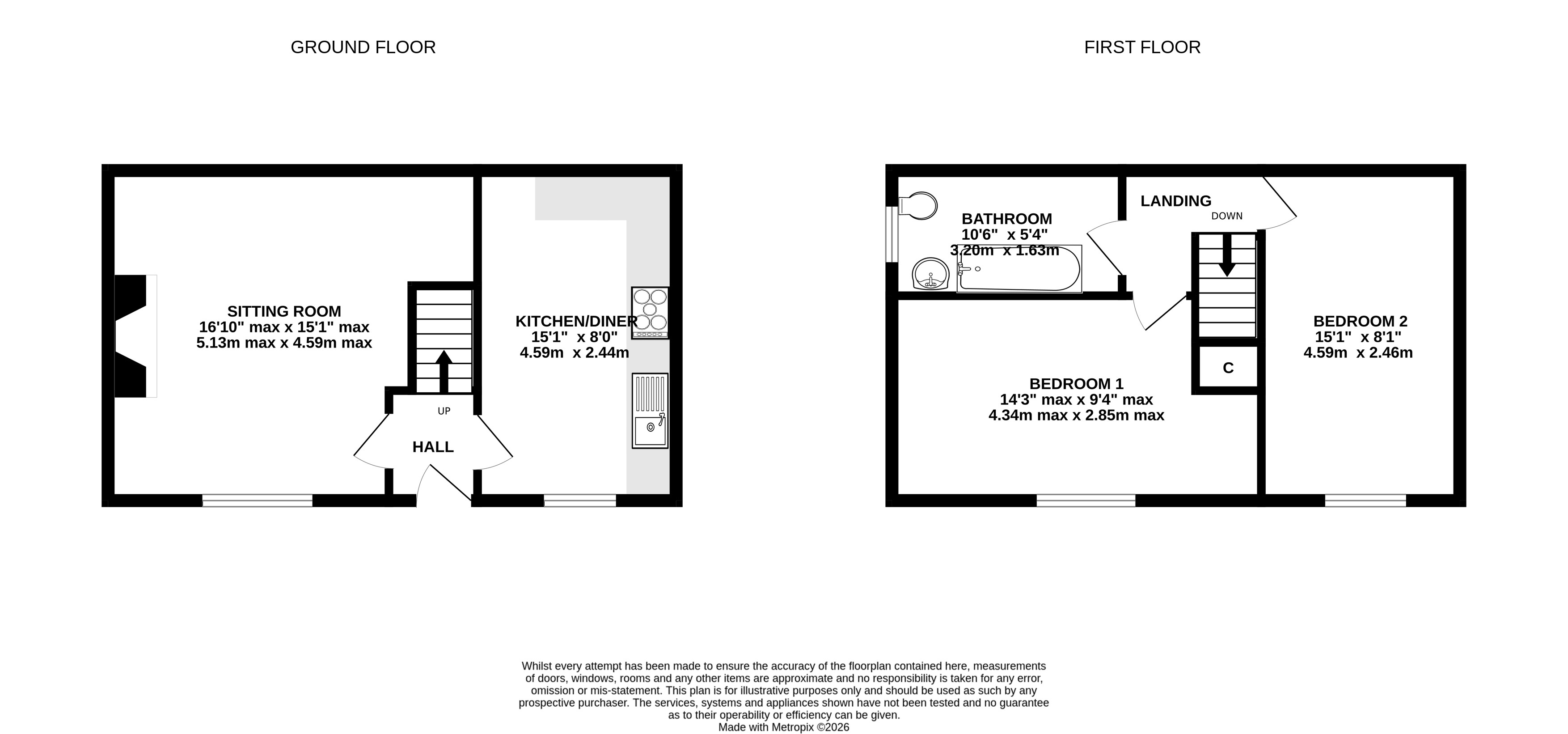 Both bedrooms upstairs enjoy a pleasant southerly aspect with a practical family bathroom at this level.