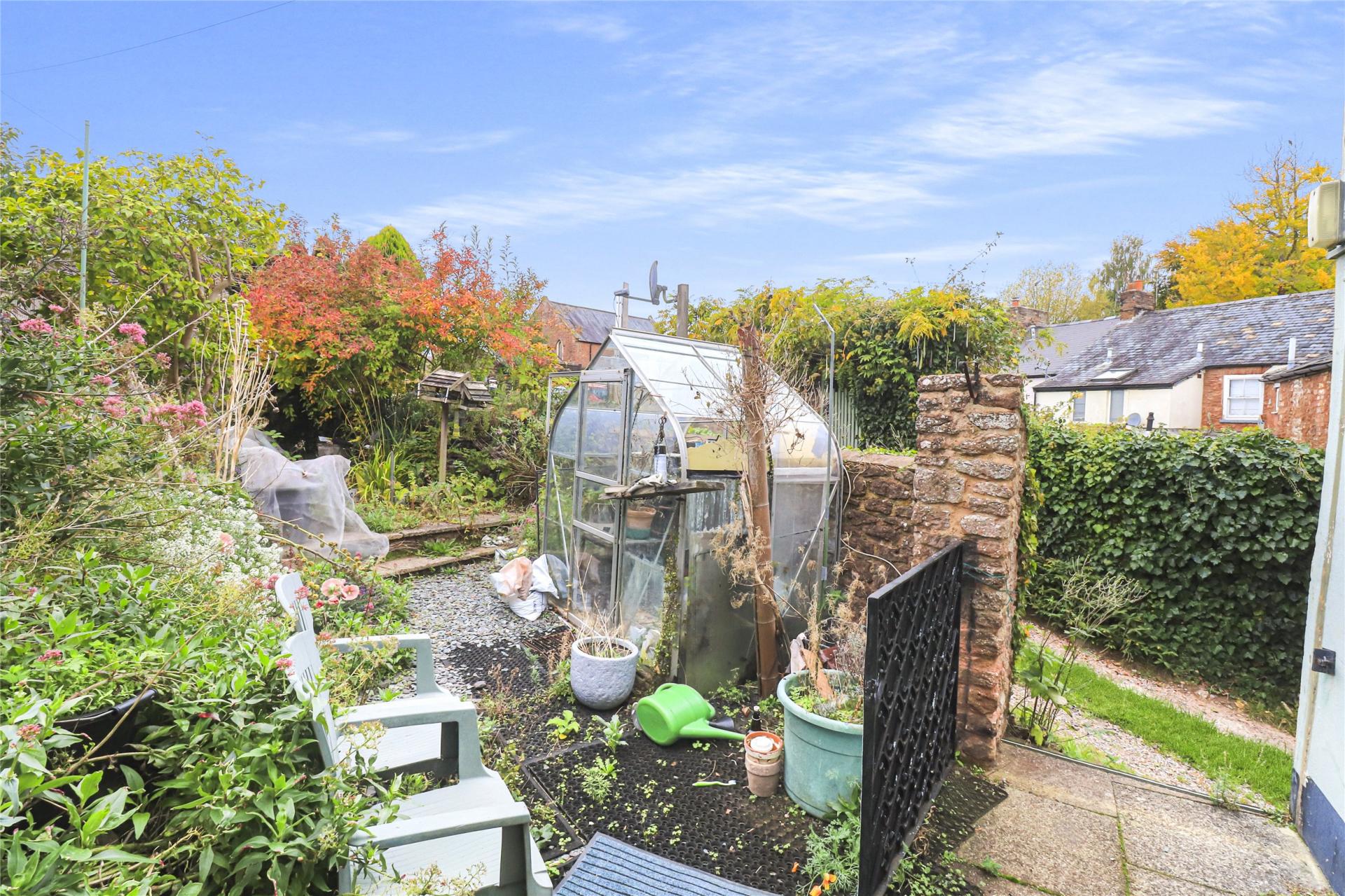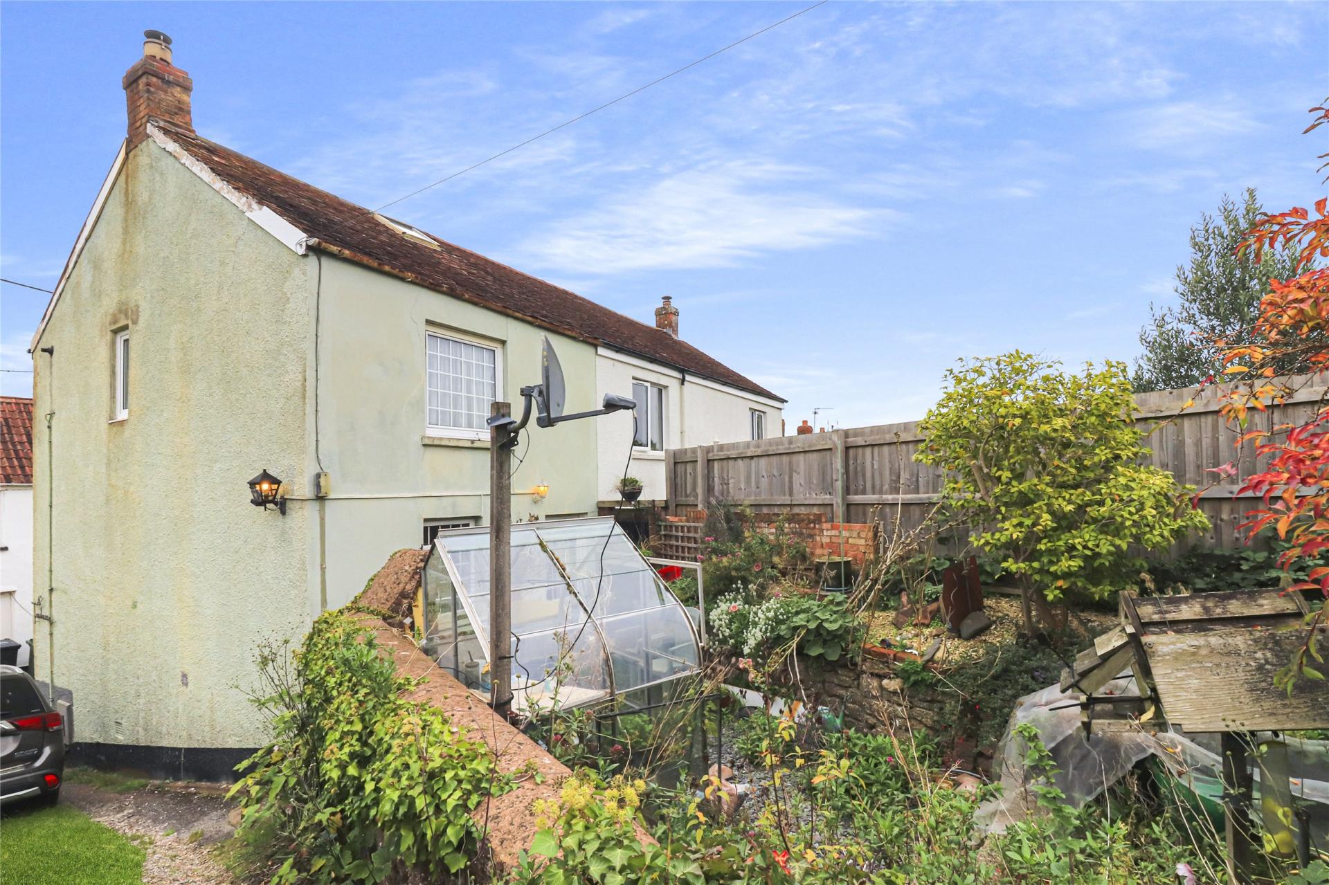 At the rear, there are south facing gardens with greenhouse, parking for two vehicles and a timber garage/workshop.
