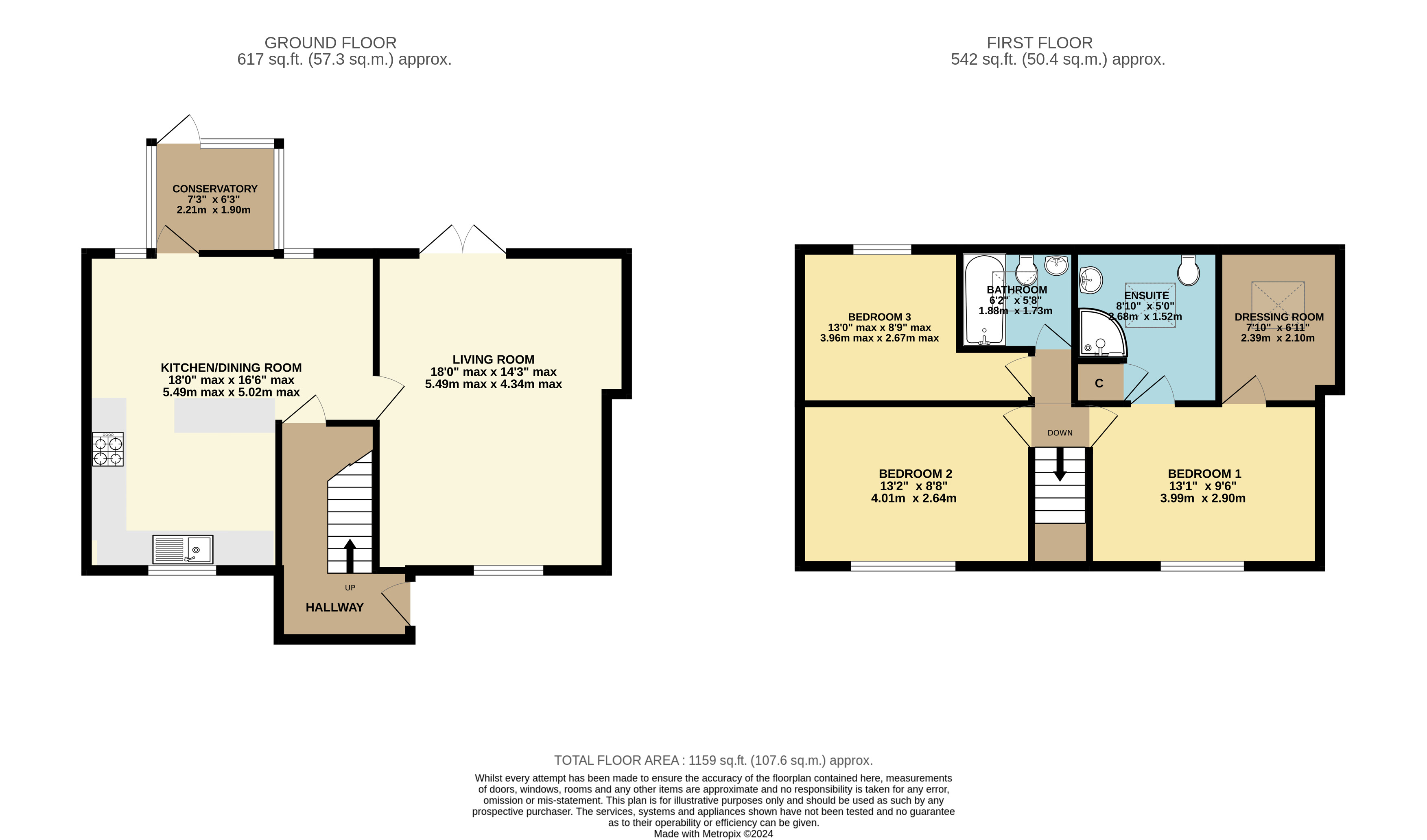 The master bedroom has its own dressing room and ensuite shower room, complemented by two further double/bedrooms and family bathroom.