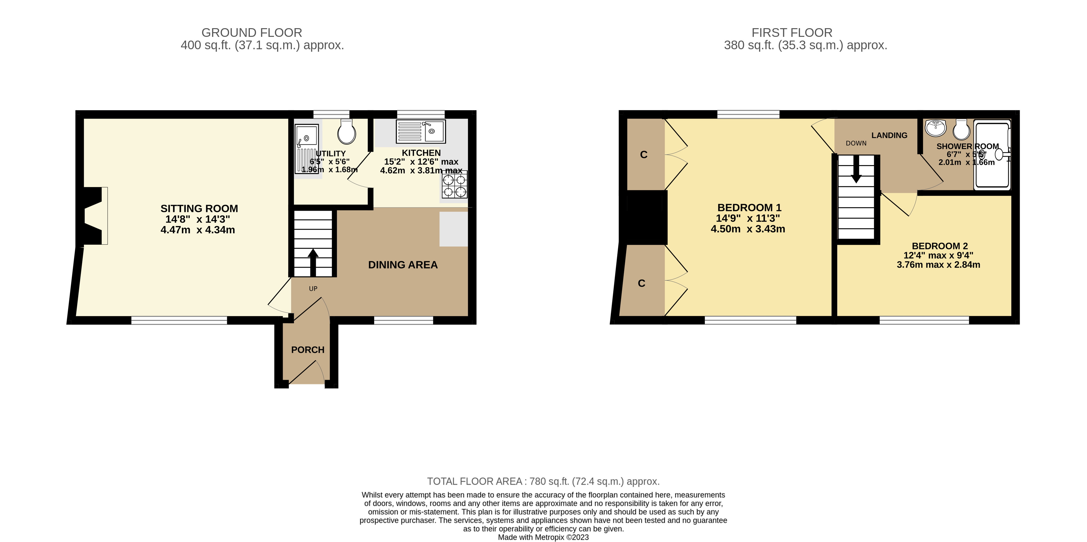 Shower Room 6'7" x 5'6" (2m x 1.68m).