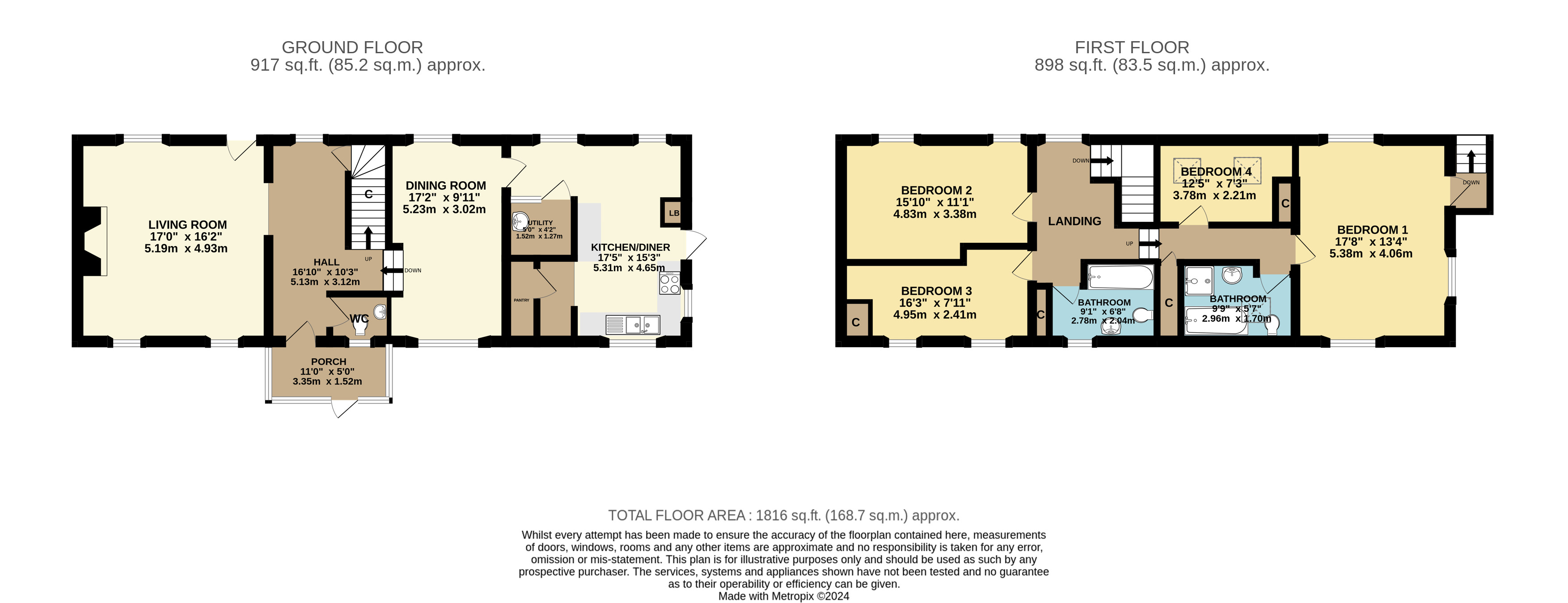 Living Room 17' x 16'2" (5.18m x 4.93m).