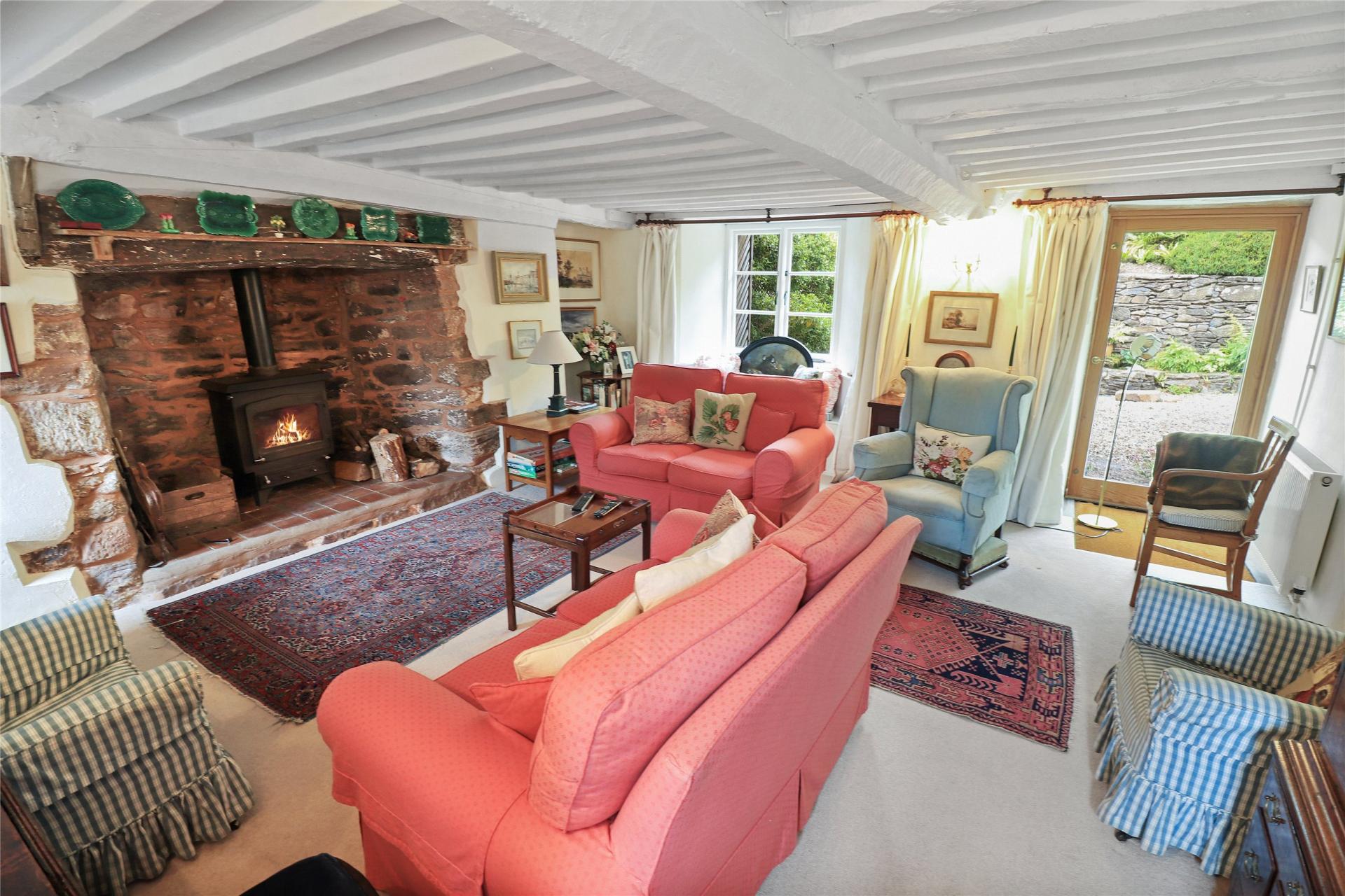 A glazed porch gives access to a generous reception hall and there is a dual aspect living room with inglenook fireplace and multi-fuel log burner and door to the rear garden.