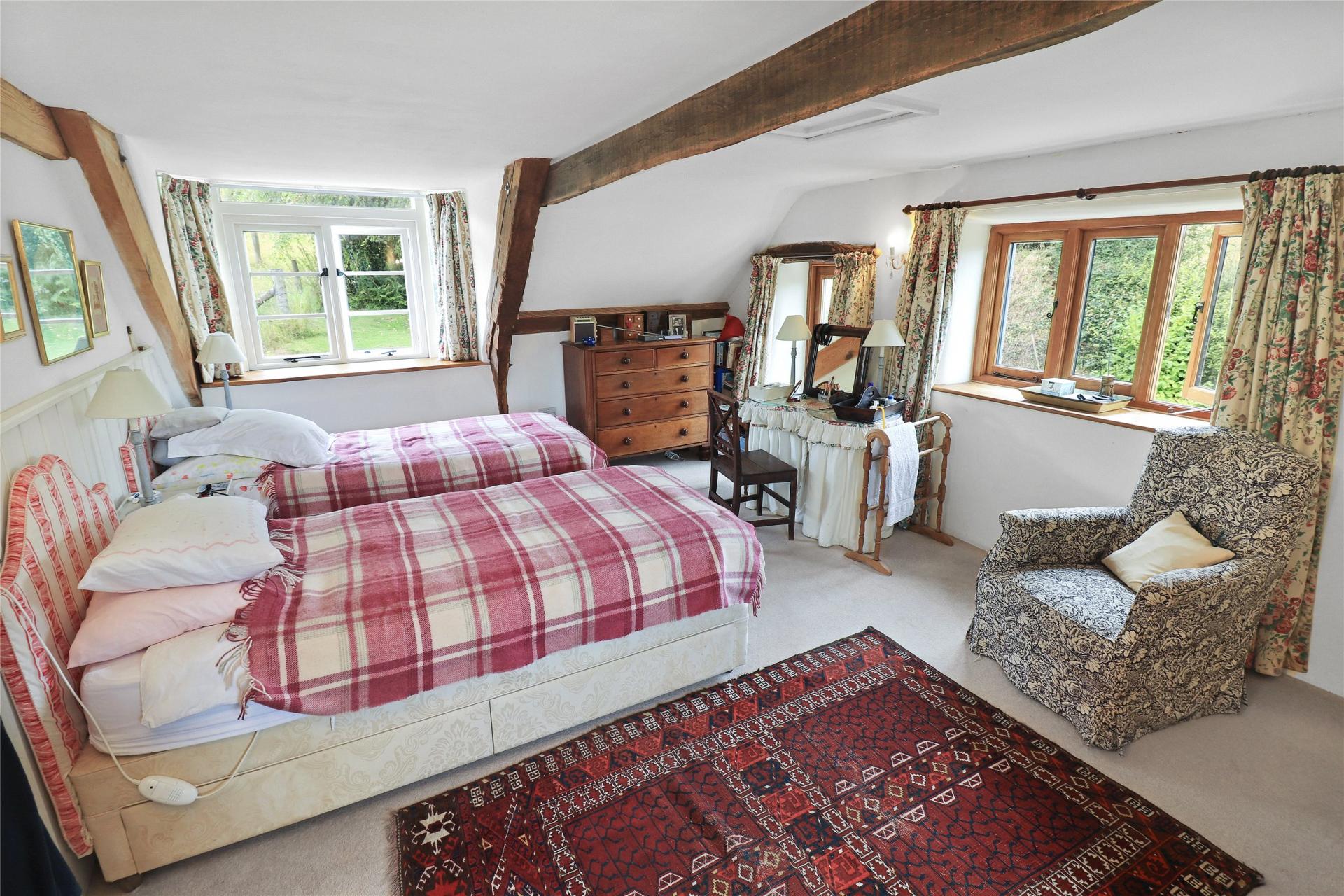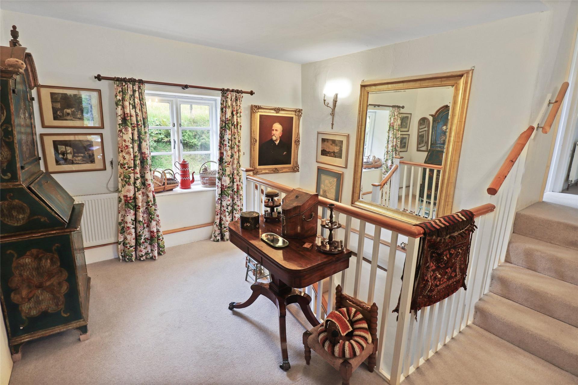 The wide landing leads to four generous bedrooms and two bathrooms, all enjoying lovely views over the surrounding garden and countryside. The master bedroom has a side flight of stone steps leading to the terrace.