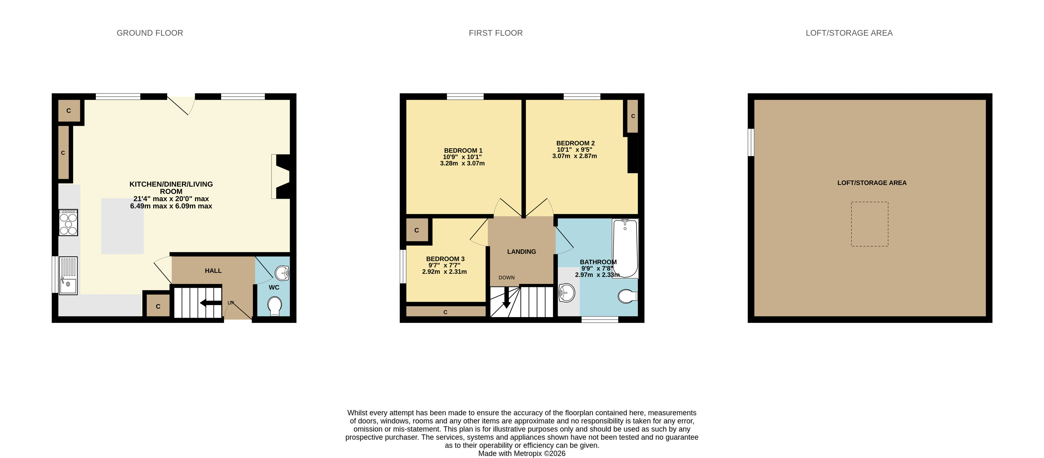Bedroom Three 9'7" x 7'7" (2.92m x 2.3m).