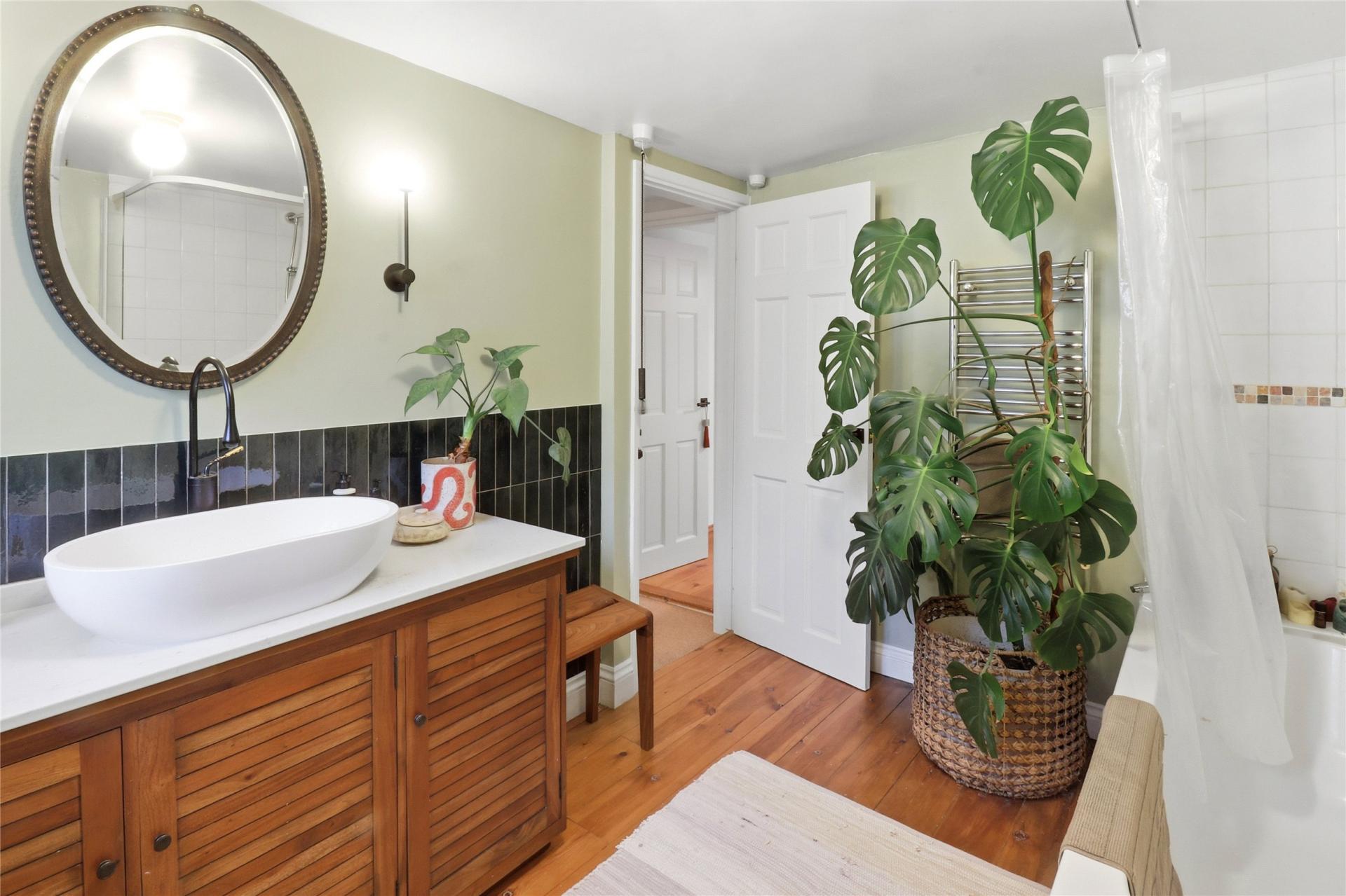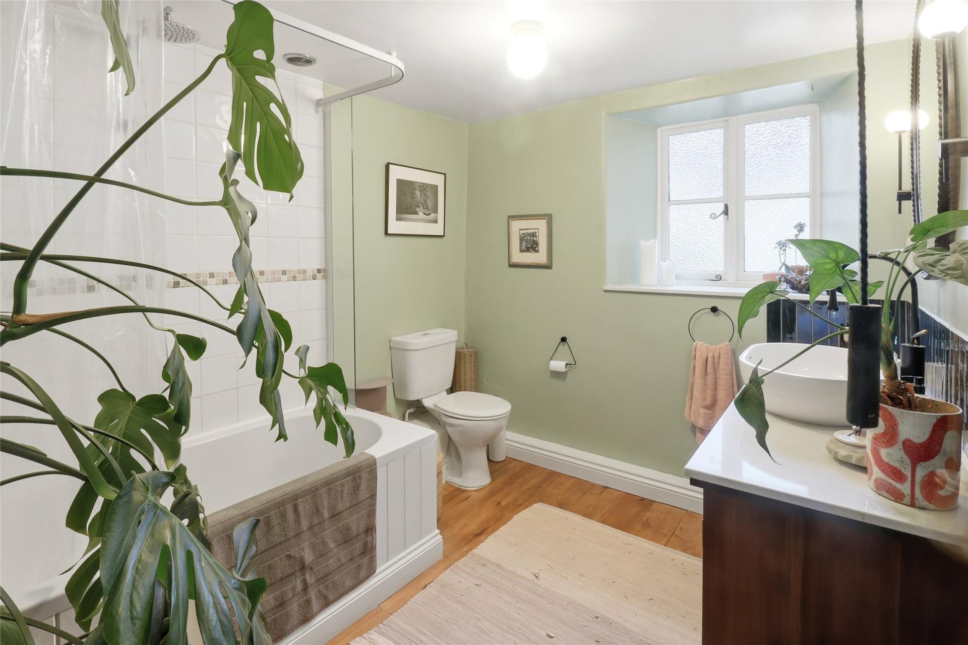 The accommodation comprises of a hall, ground floor cloakroom and a practical open plan kitchen/dining/living room with log burner, dual aspect windows (two sashes) and glazed door leading to the rear garden. The kitchen has been replaced with a contemporary design and additional tailor made furniture.