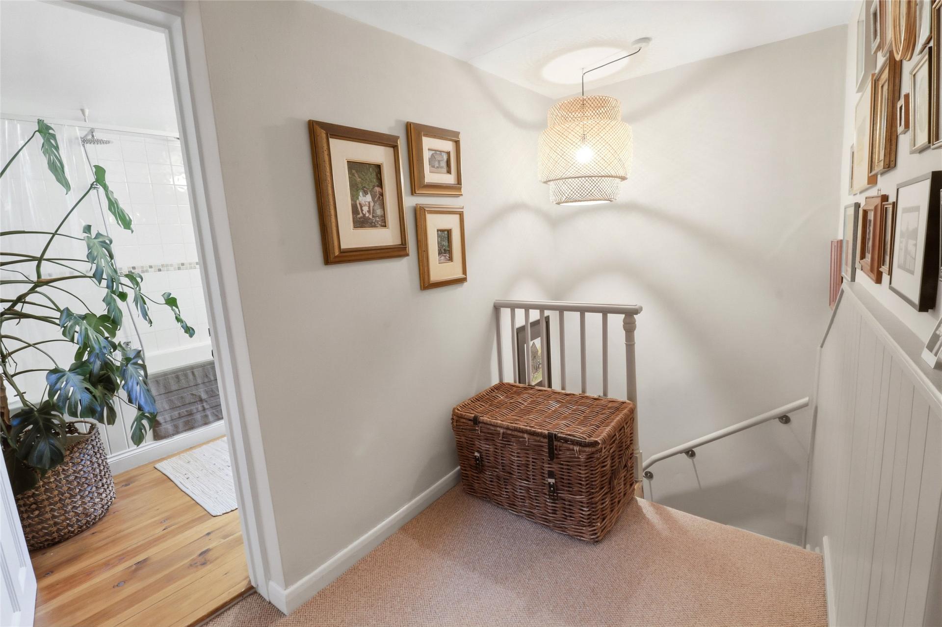 At first floor level there is a wide landing giving access to two double bedrooms and a large single with wardrobes and a well proportioned family bathroom.