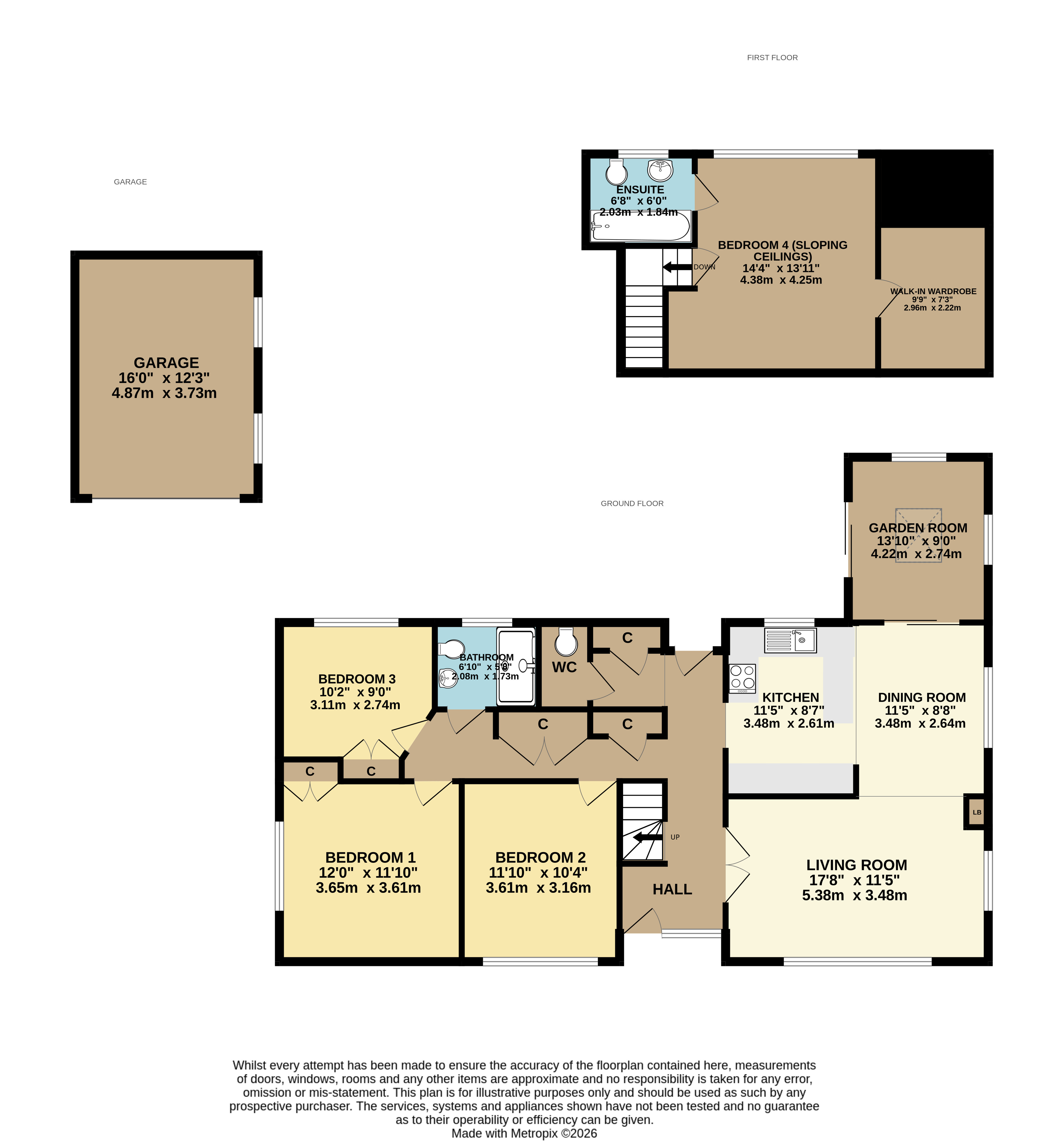 Garage 16' x 12'3" (4.88m x 3.73m).