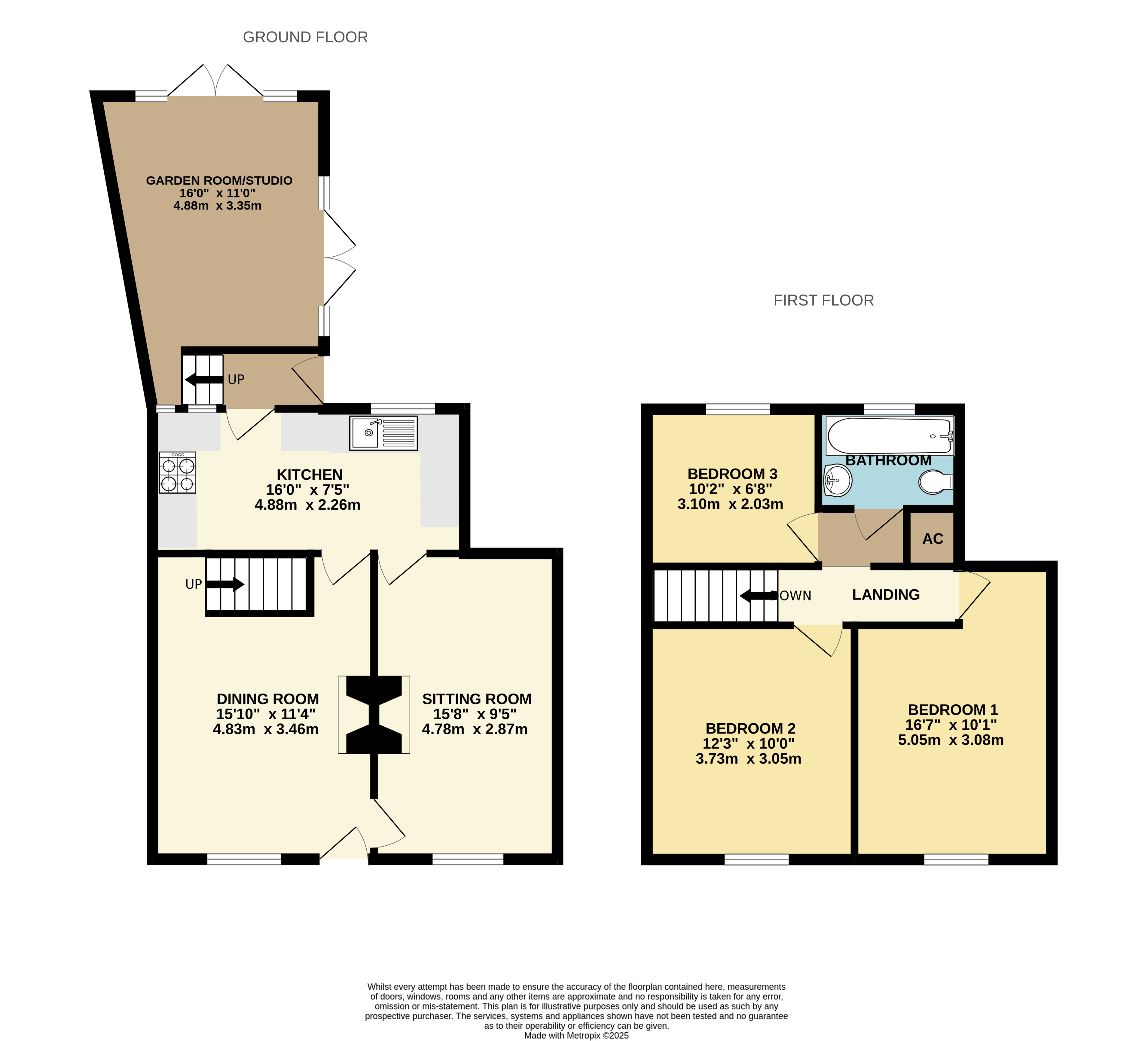 The accommodation offers two separate reception rooms, both with fireplaces, a kitchen/breakfast room with further access to a versatile and spacious garden room/studio at the rear.