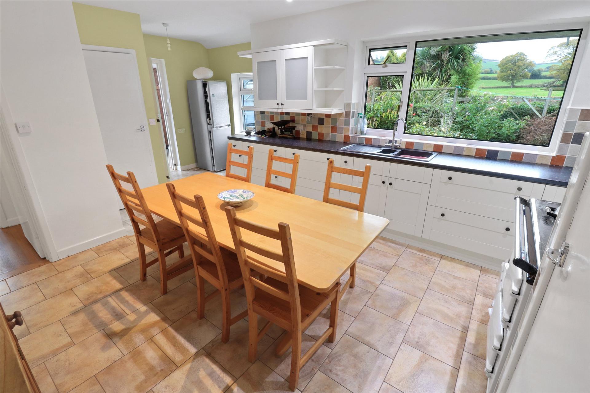 The accommodation consists of an entrance hall with cloakroom, a sitting room with doors leading to the rear, west facing garden and a spacious, sociable kitchen/dining room overlooking the rear garden and beyond. There is an AGA and pantry.