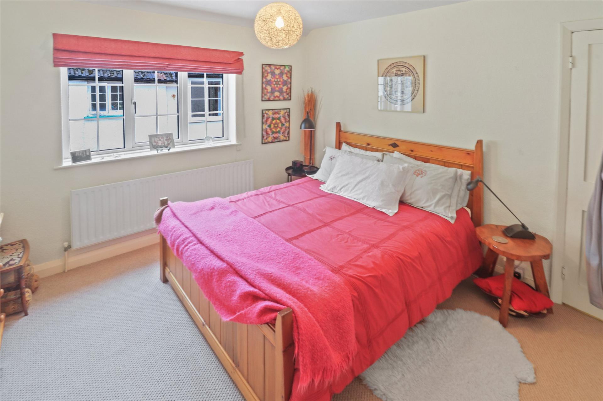 A wide entrance hall gives access to the living room with log burner and the kitchen/dining room, all with slate flooring. There is a practical ground floor cloakroom and access straight through the hall to the rear courtyard garden.