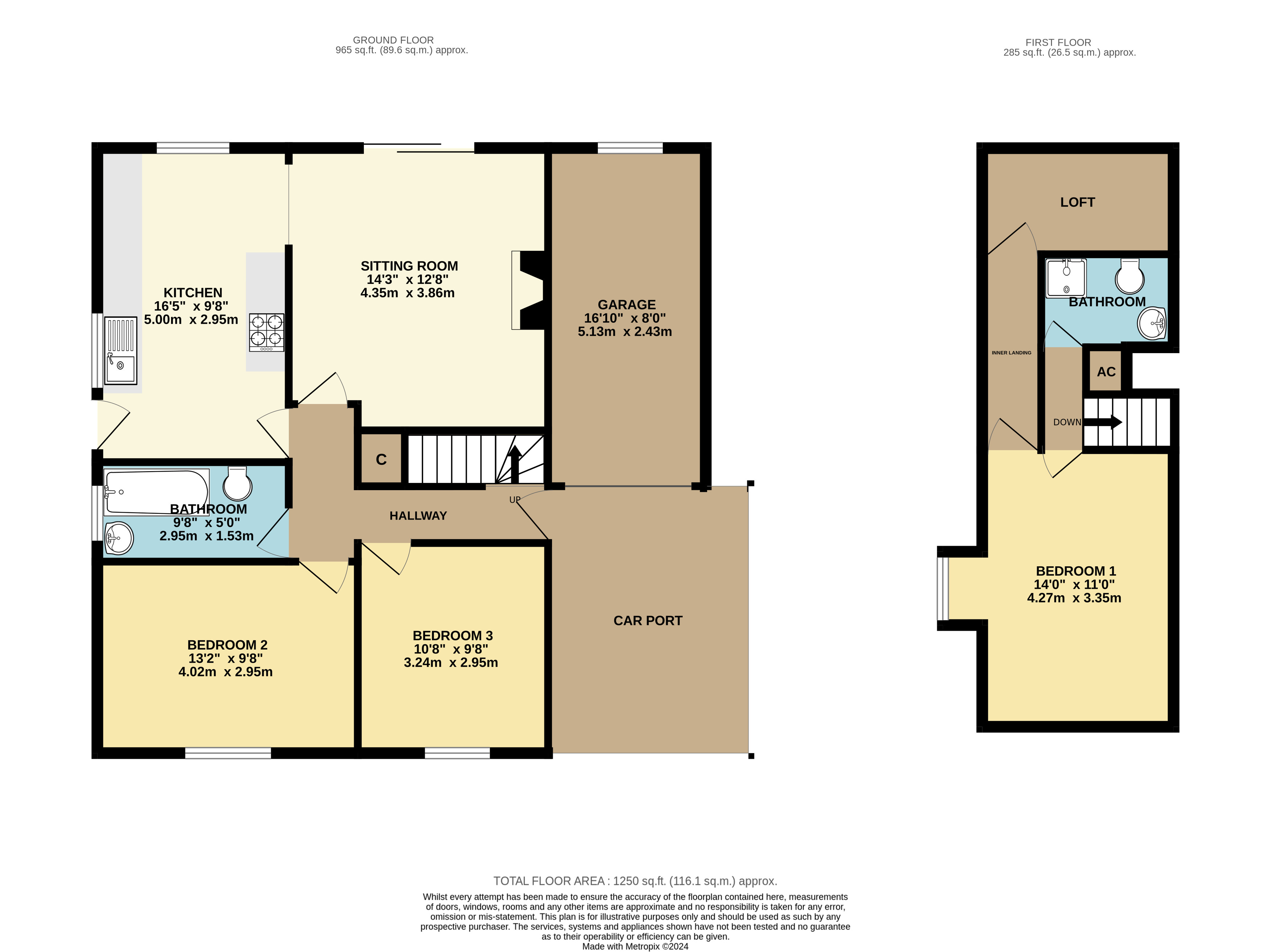 Garage 16'10" x 8' (5.13m x 2.44m).