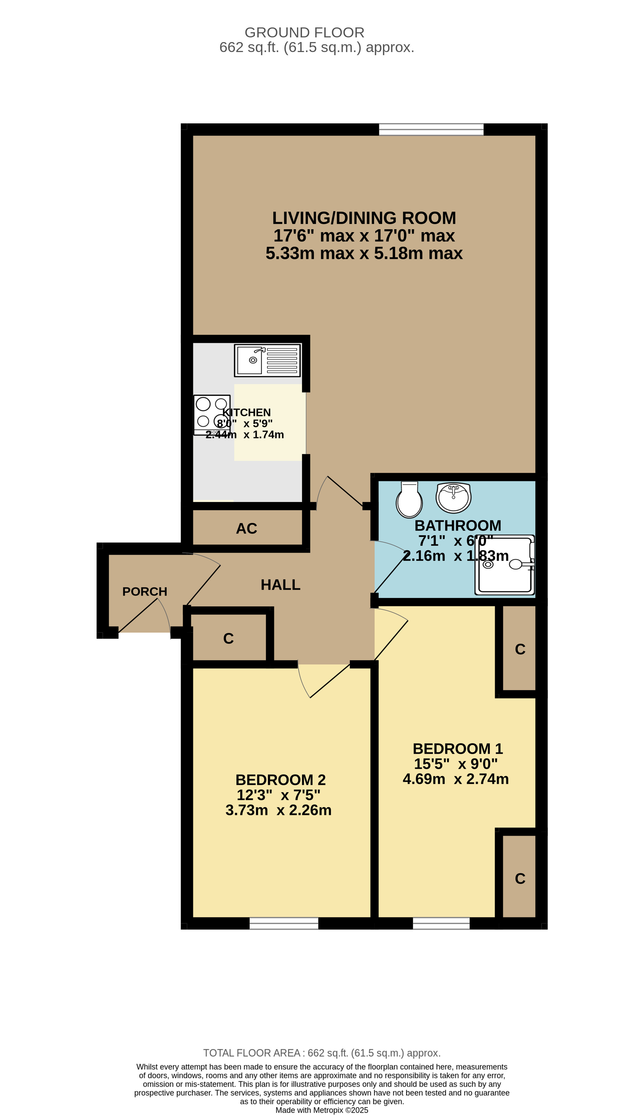 Living/Dining Room 17'6" x 17' (5.33m x 5.18m).