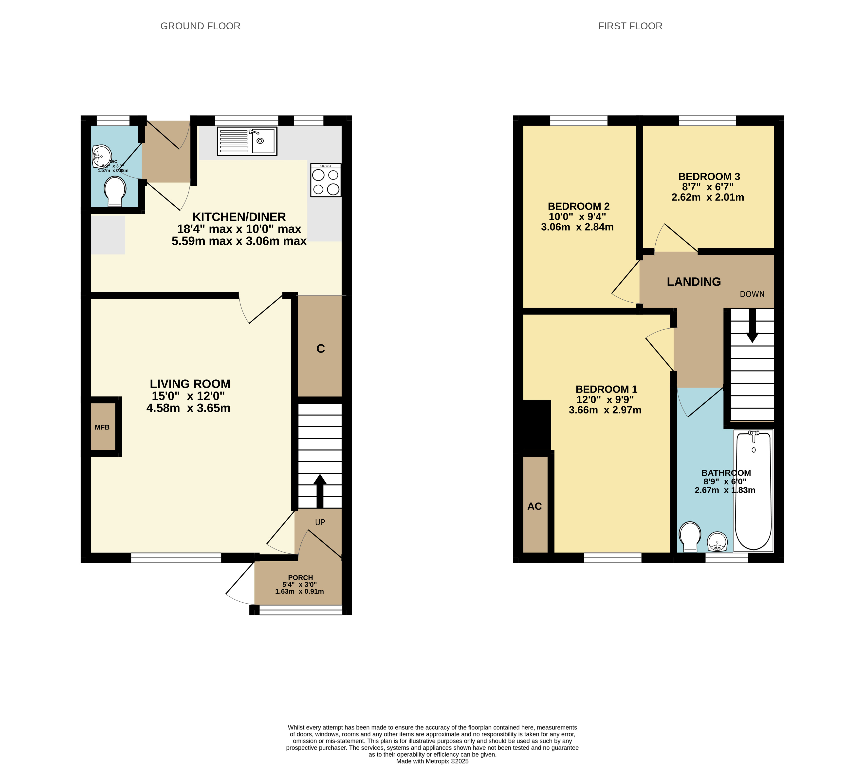 Bathroom 8'9" x 6' (2.67m x 1.83m).