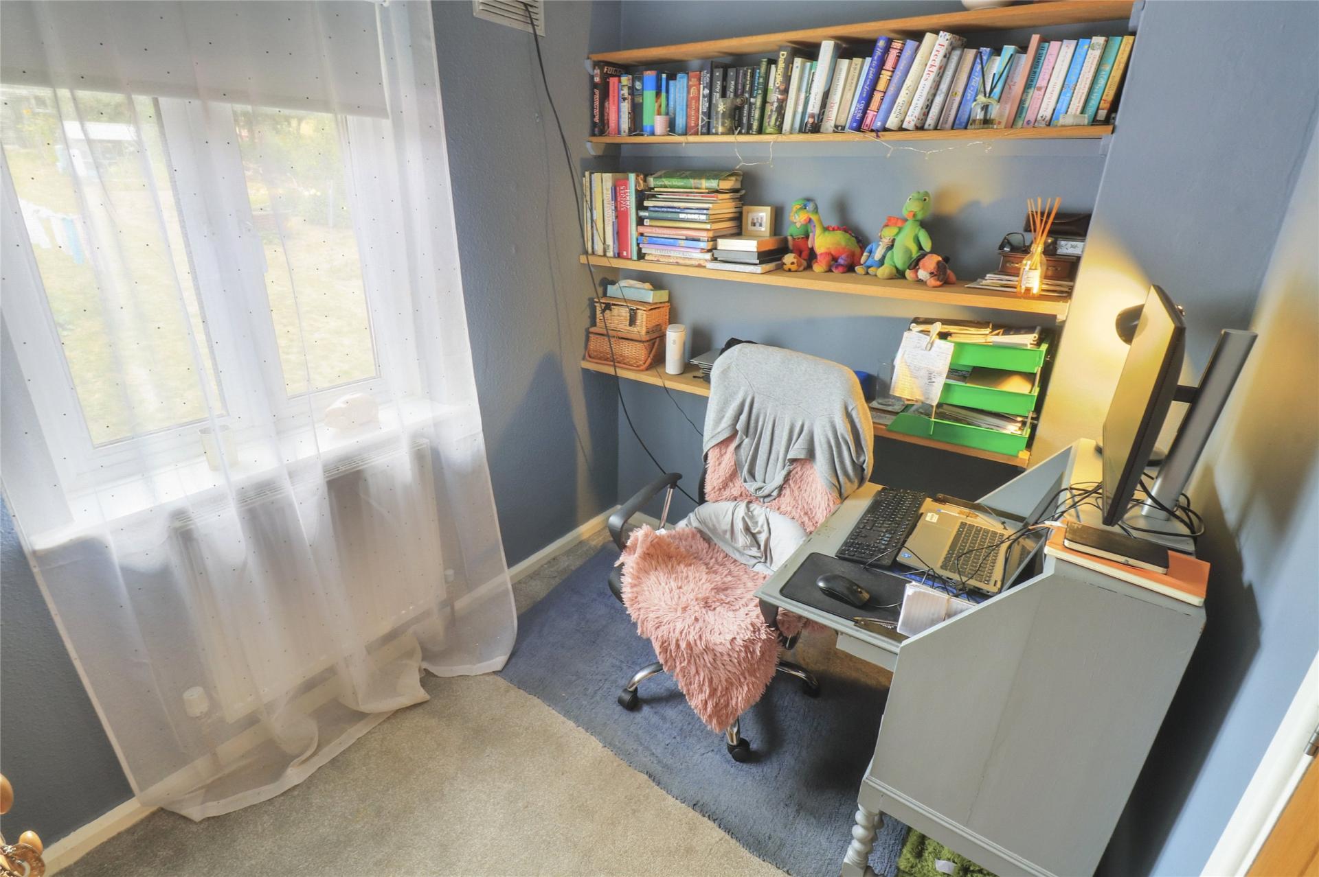 There are three bedrooms at first floor level with the third currently being used as a home office and family bathroom with shower over the bath.
